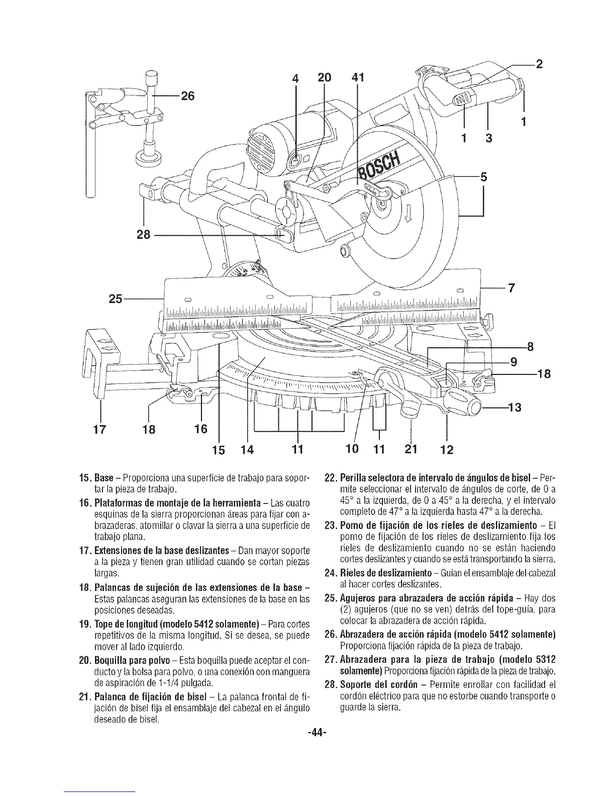 21. Palanca de fijacibn de bisel - La palanca frontal de fi-