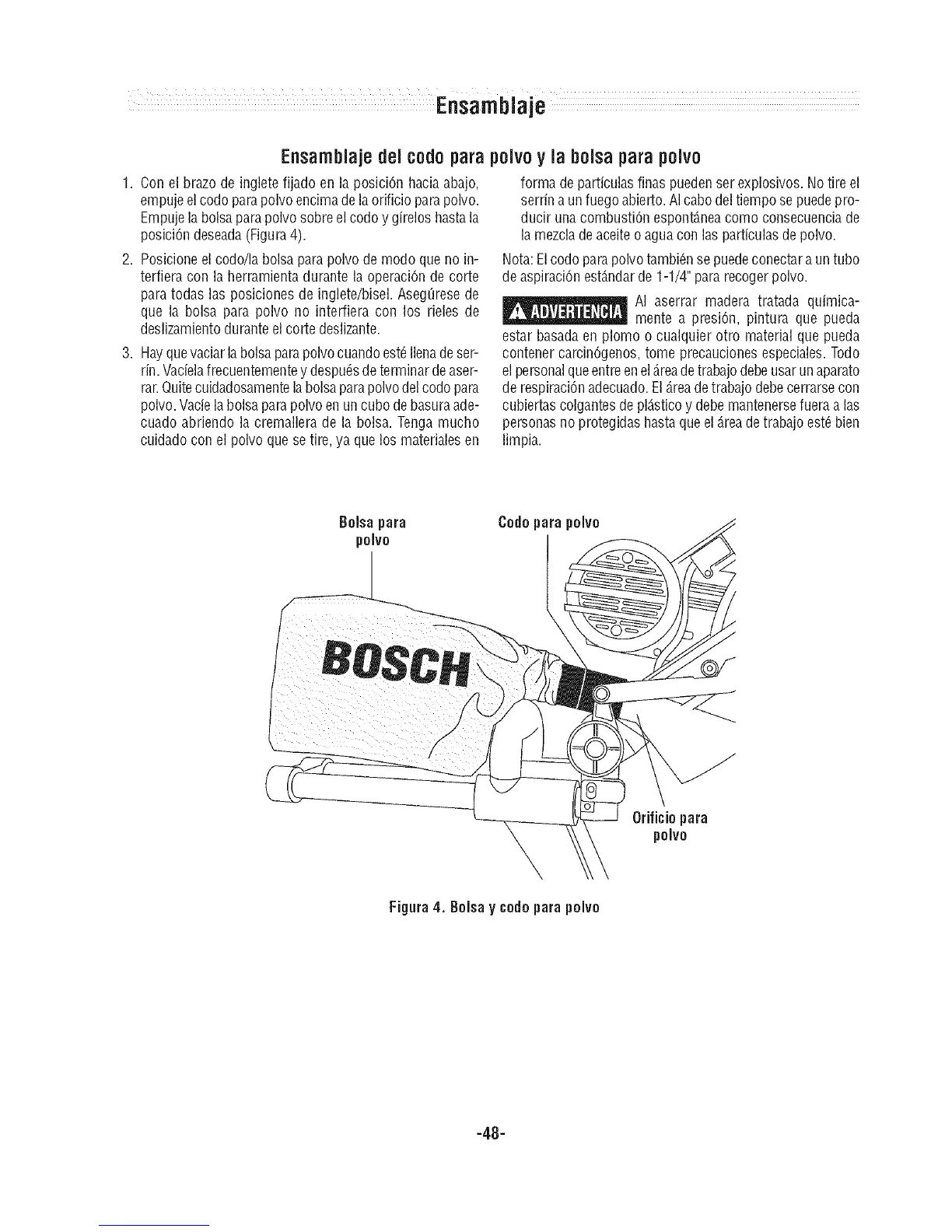 2. Posicioneel codo/la bolsa para polvo de modo que no in-