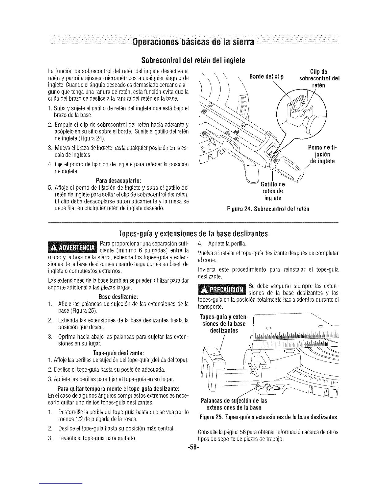 mano y la hoja de la sierra, extienda los topes-guia y exten-