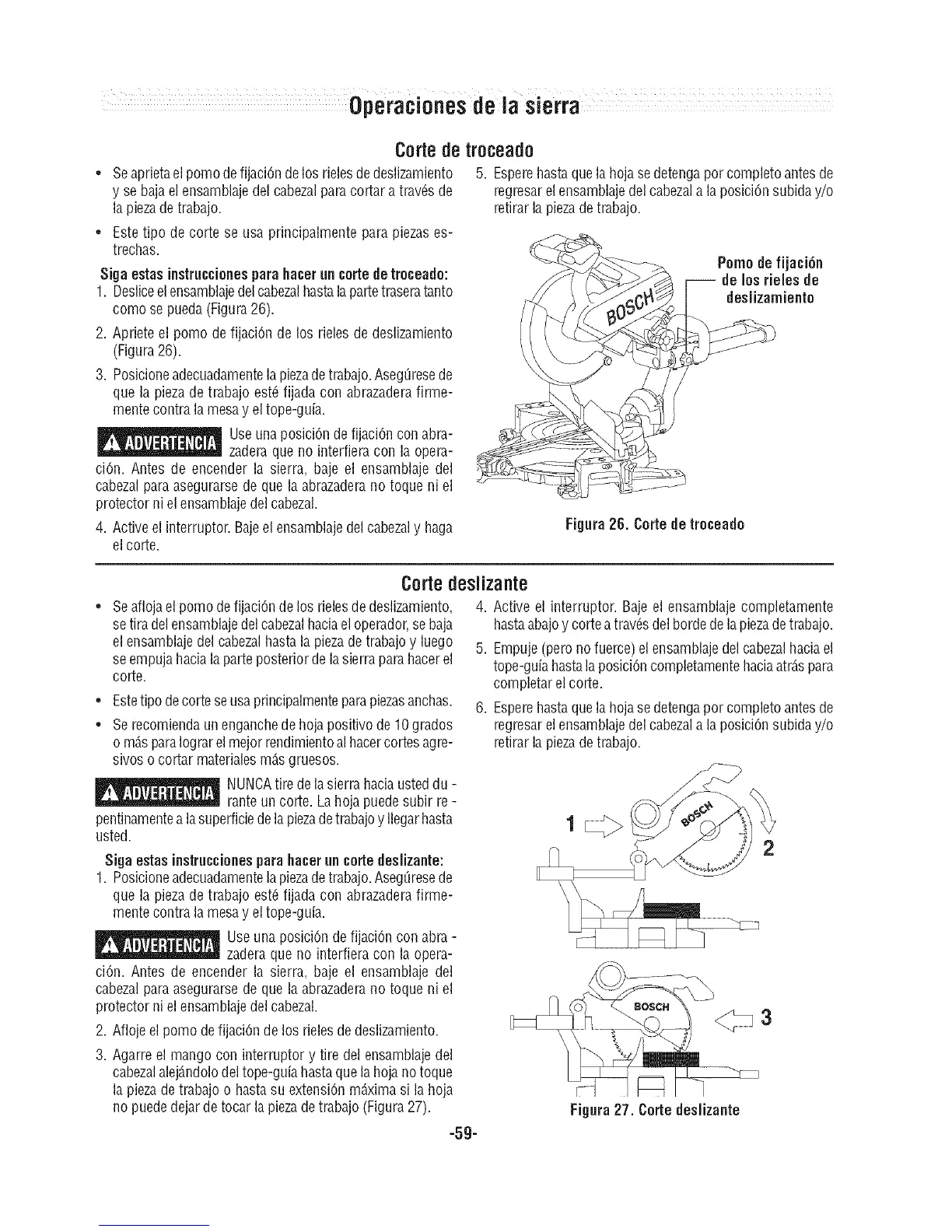 ciOn. Antes de encender la sierra, baje el ensamblaje del