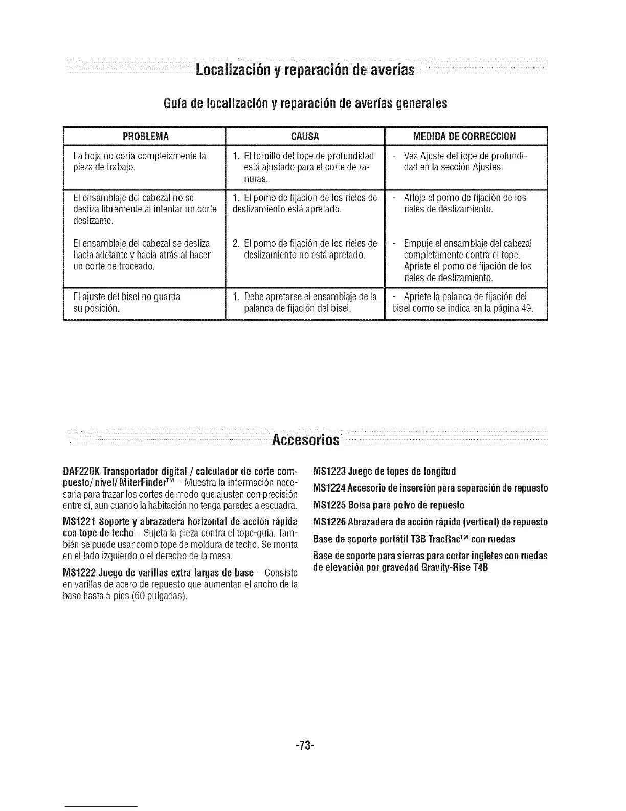 su posici0n, palancade fijaci0n del bisel, bisel como se indica enla p_gina49.