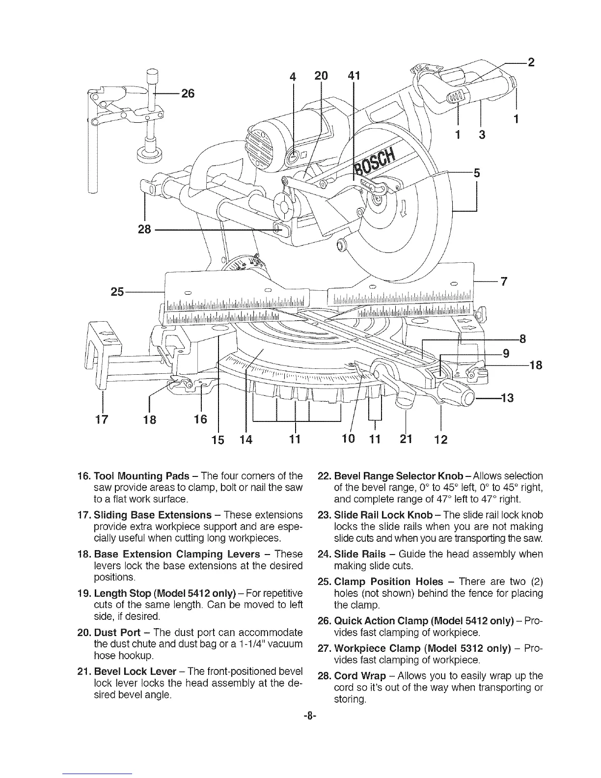 19. Length Stop (Model 5412 only) - For repetitive