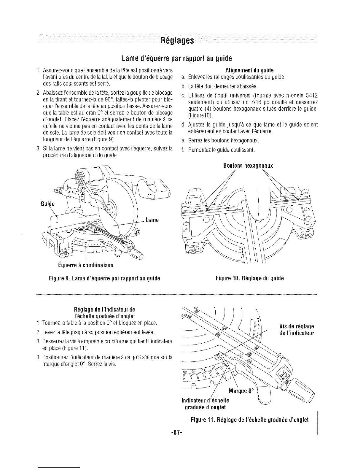 Figure g. Lame d'_querre par rapport au guide Figure 10. R_glage du guide