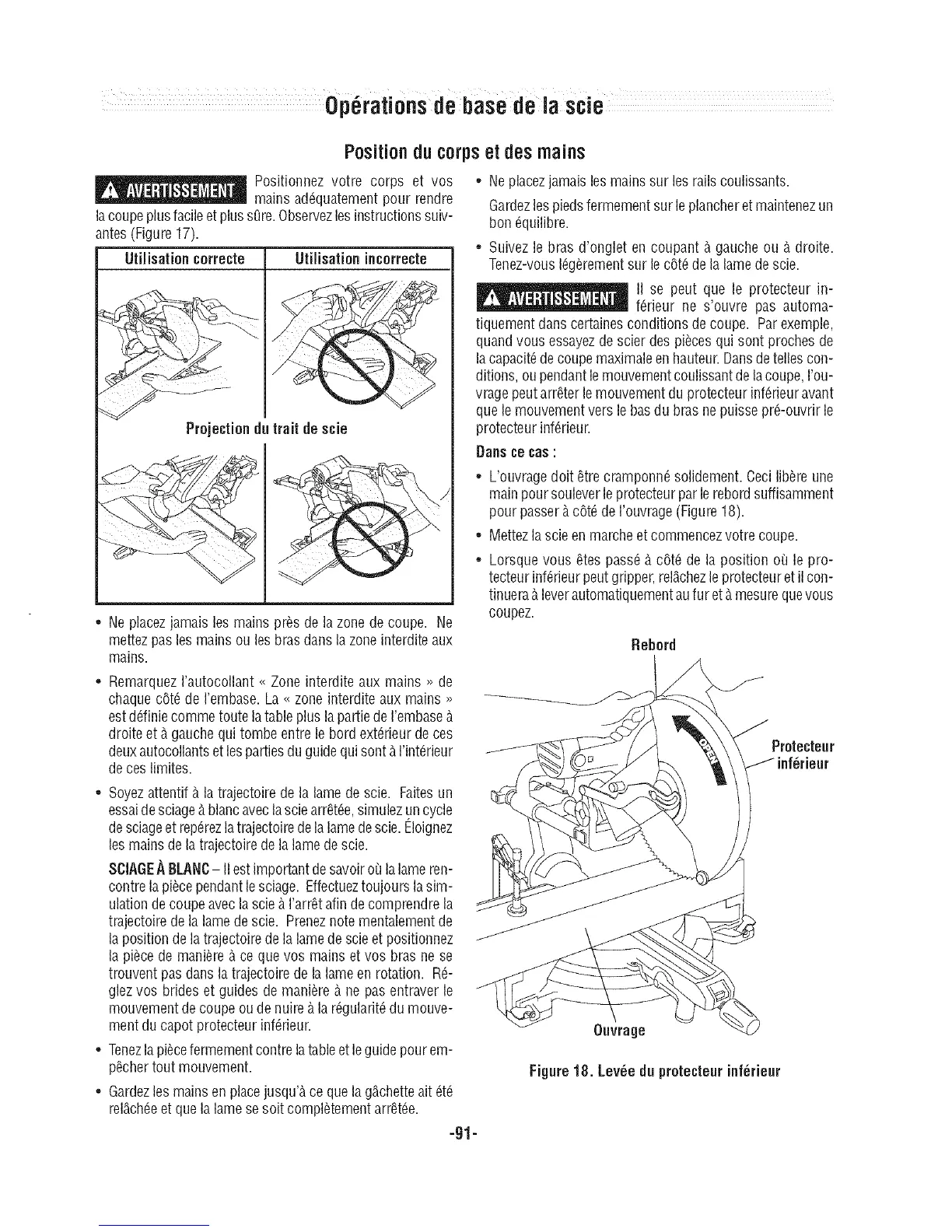 * Soyezattentif _.la trajectoire de la lame de scie. Faitesun