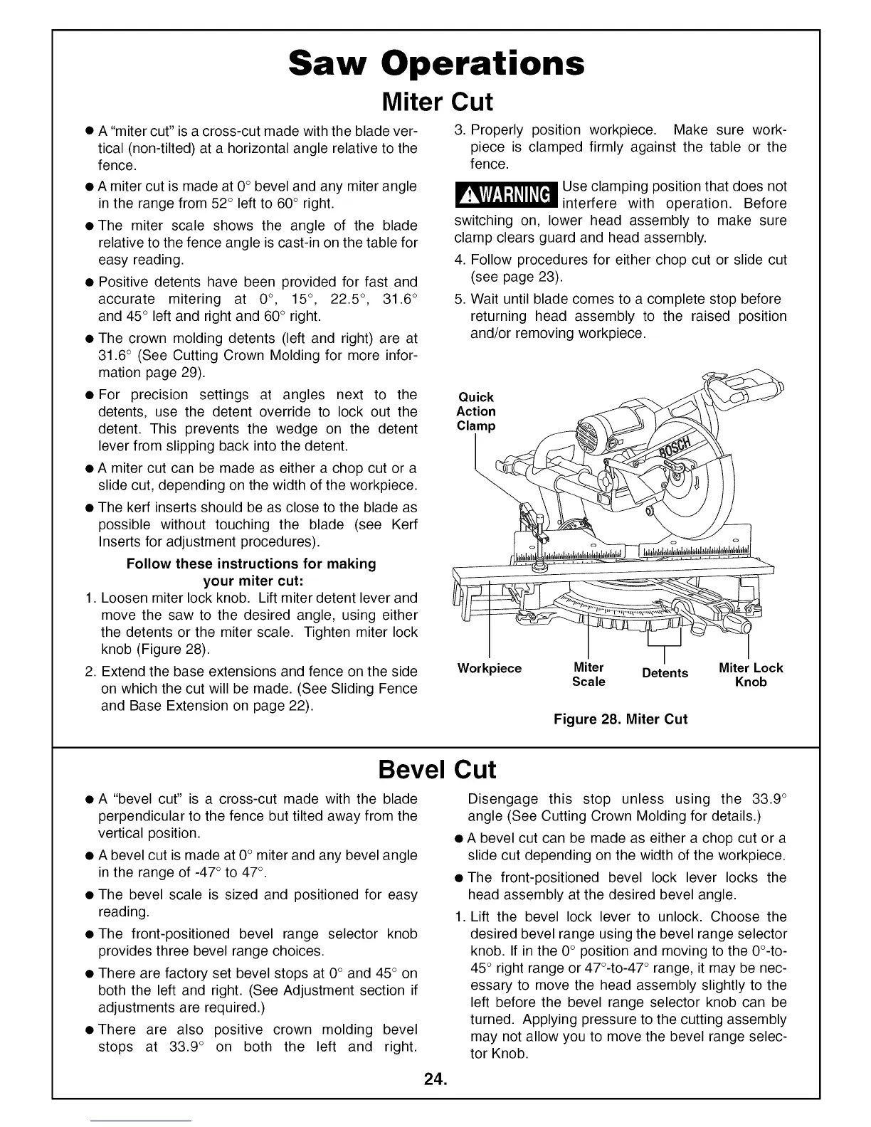 • A miter cut can be made as either a chop cut or a