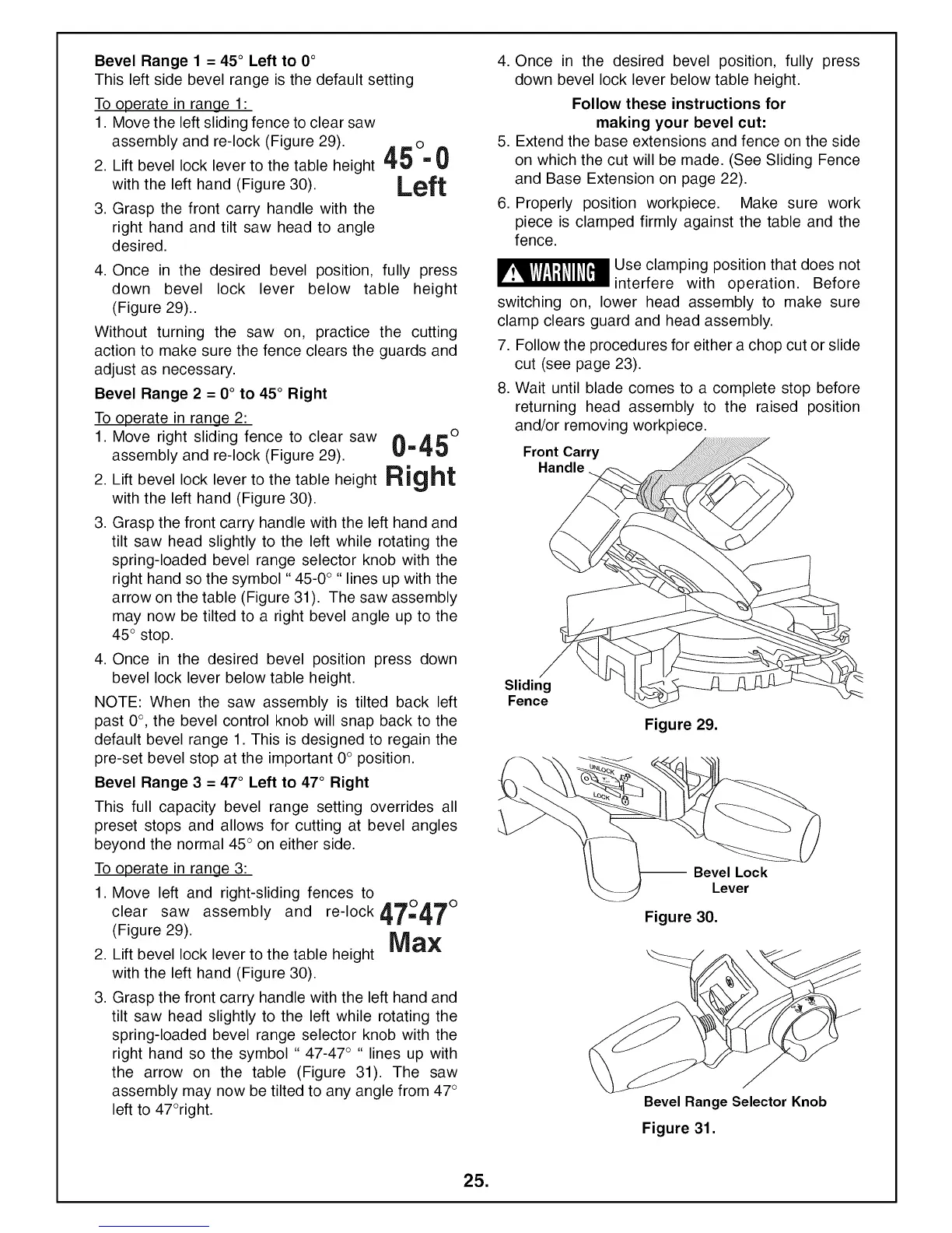 Bevel Range 3 = 47 ° Left to 47 ° Right