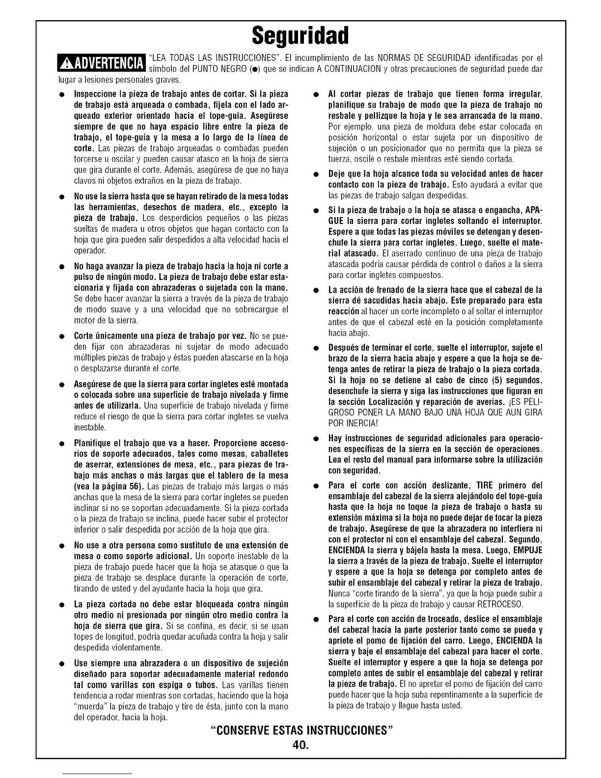 "LEA TODAS LAS INSTRUCCIONES".El incumplimiento de las NORMAS DE SEGURIDADidentificadas por el
