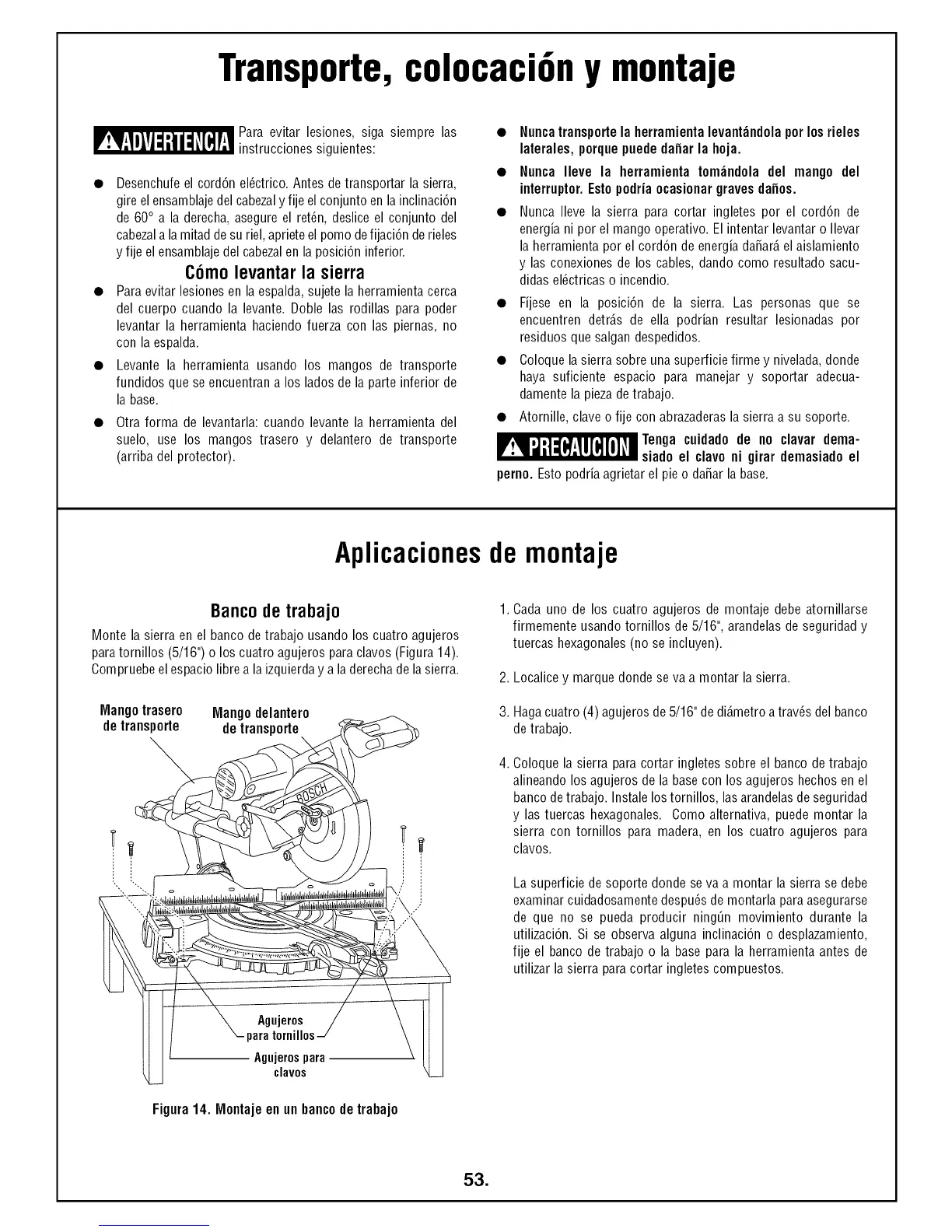 • Nunca Ileve la sierra para cortar ingletes por el cord6n de
