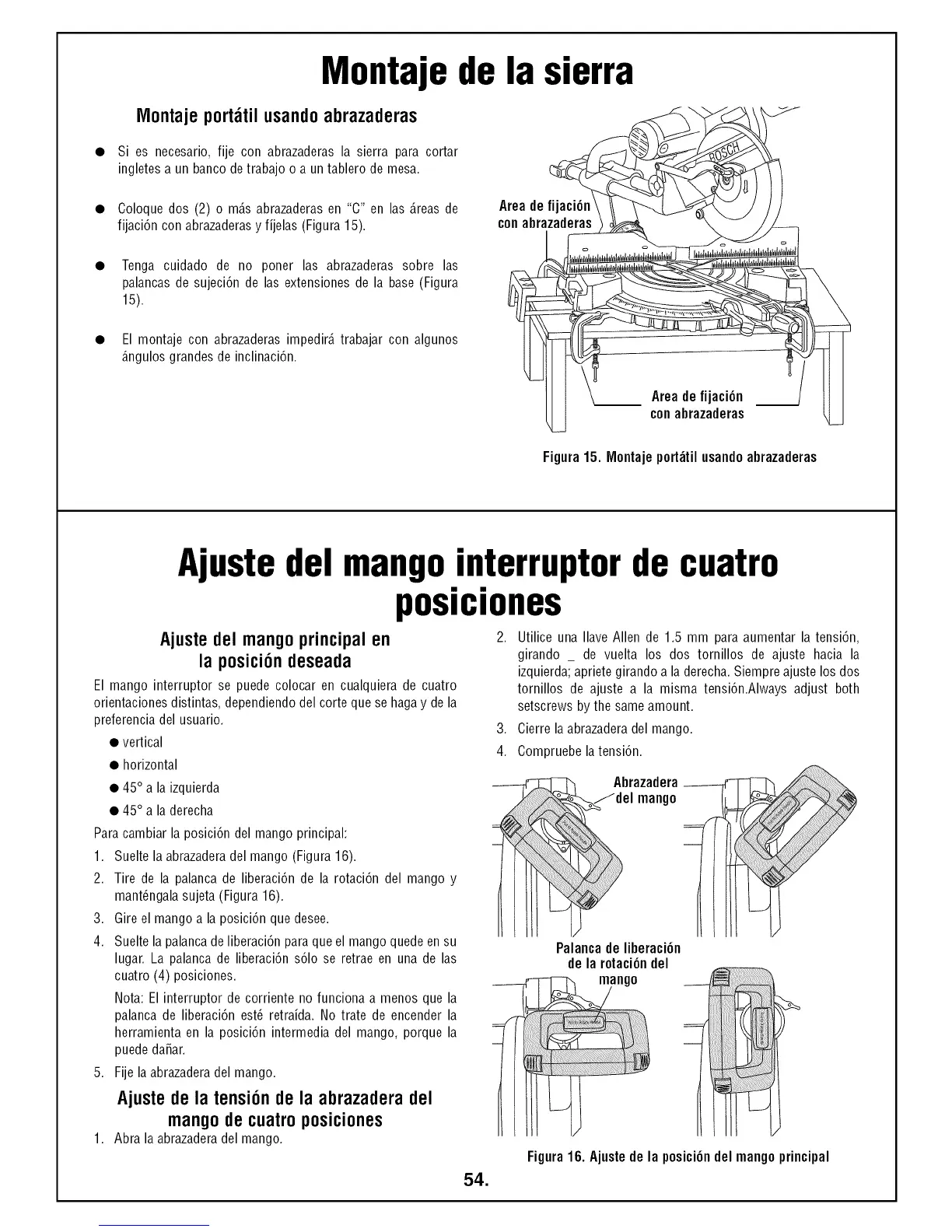 Figura16.Ajustede laposici6ndelmangoprincipal