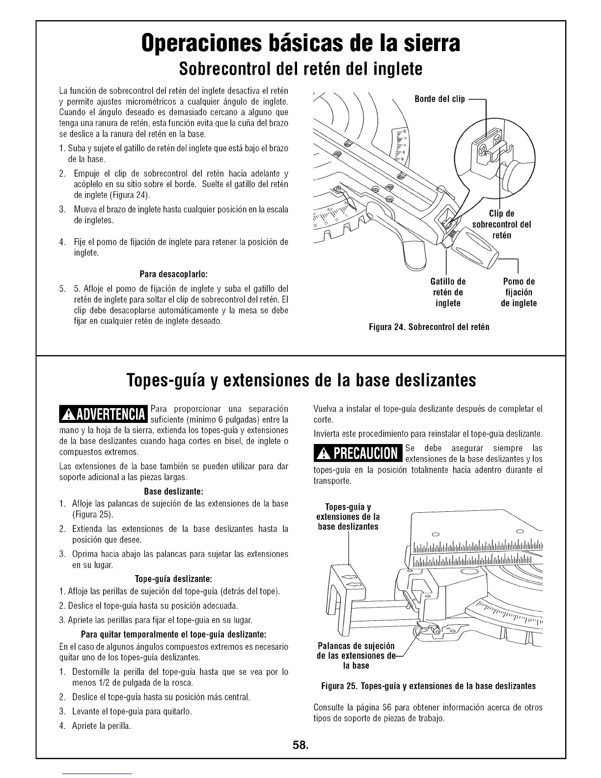 mano y la hoja de la sierra, extienda los topes-guia y extensiones