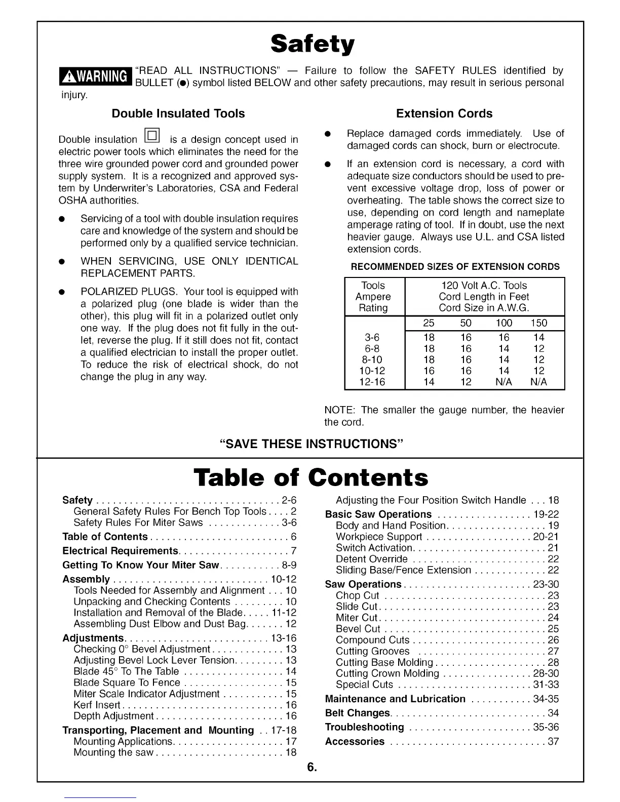 Safety Rules For Miter Saws ............. 3-6