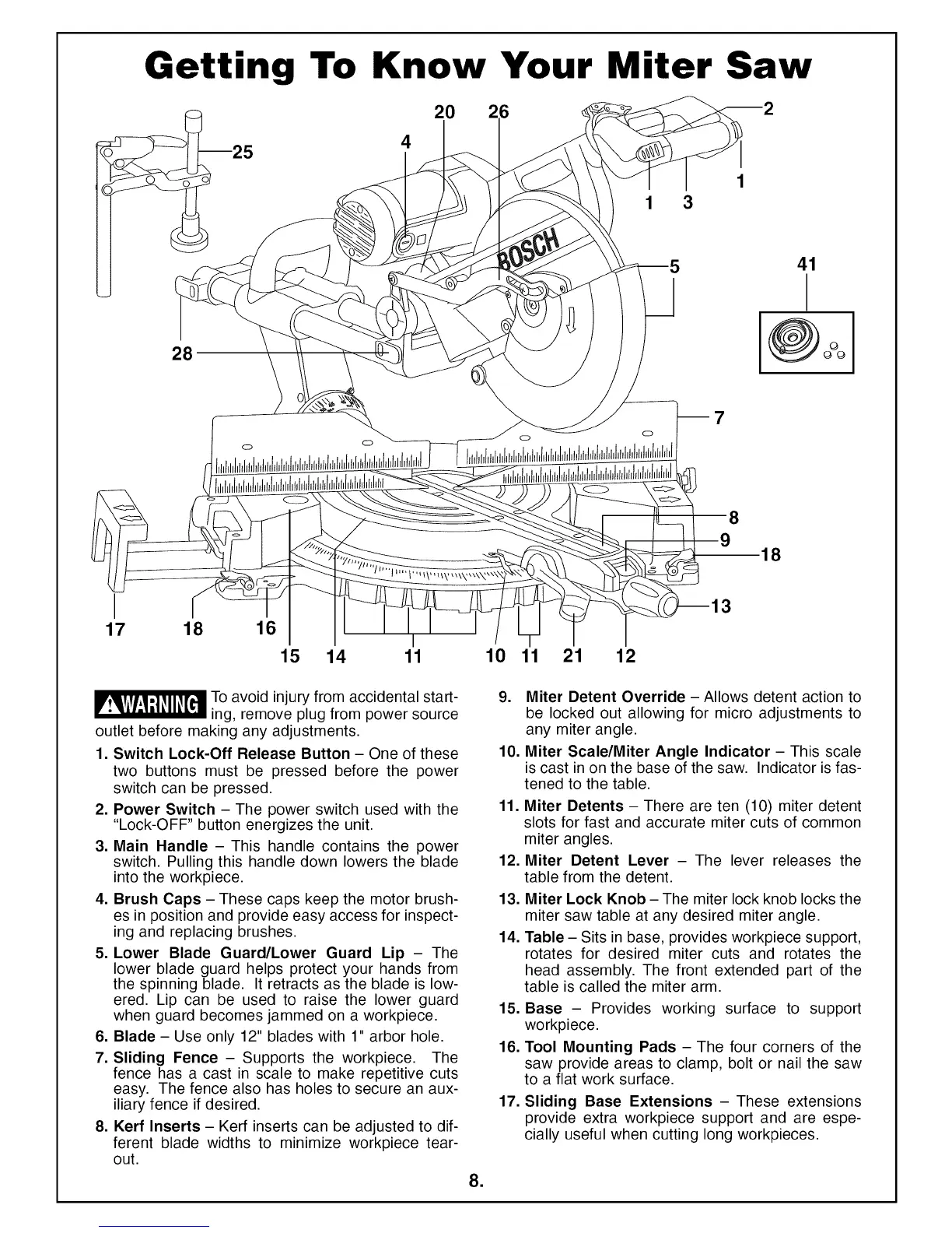 8. Kerf Inserts - Kerf inserts can be adjusted to dif-