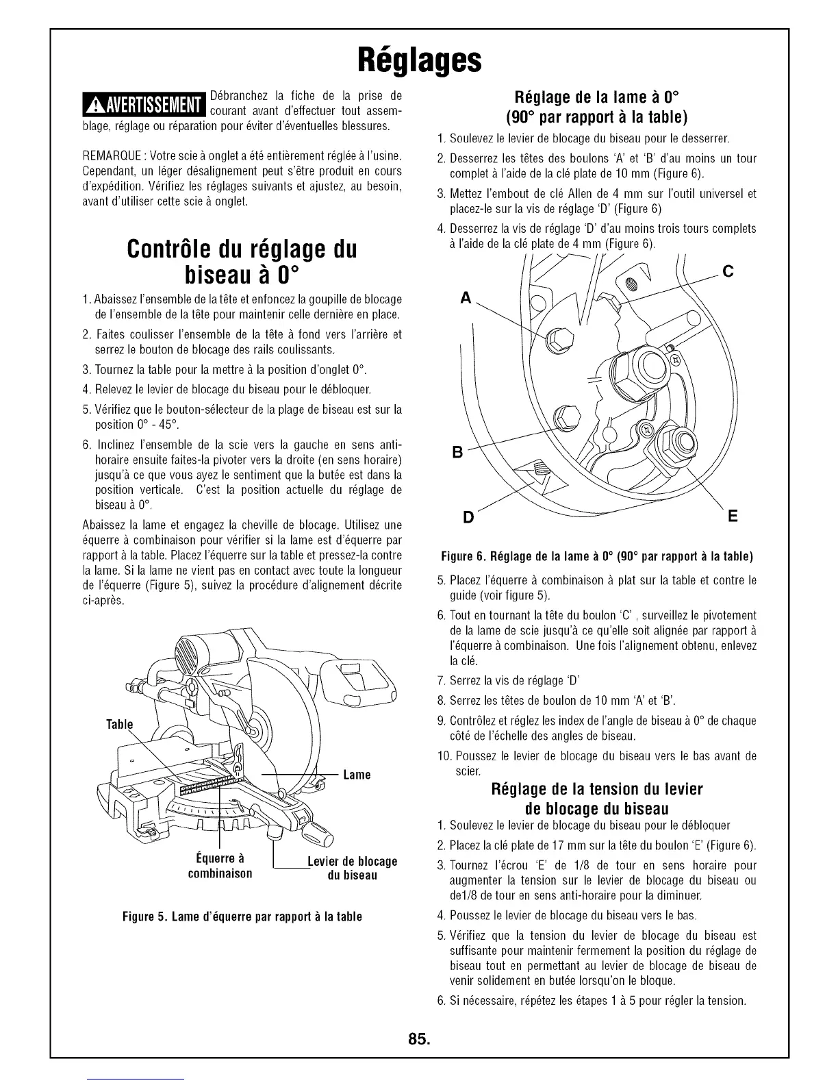 REMARQUE: Votre scie _.onglet a _t_enti_rement r_gl_e_.I'usine.