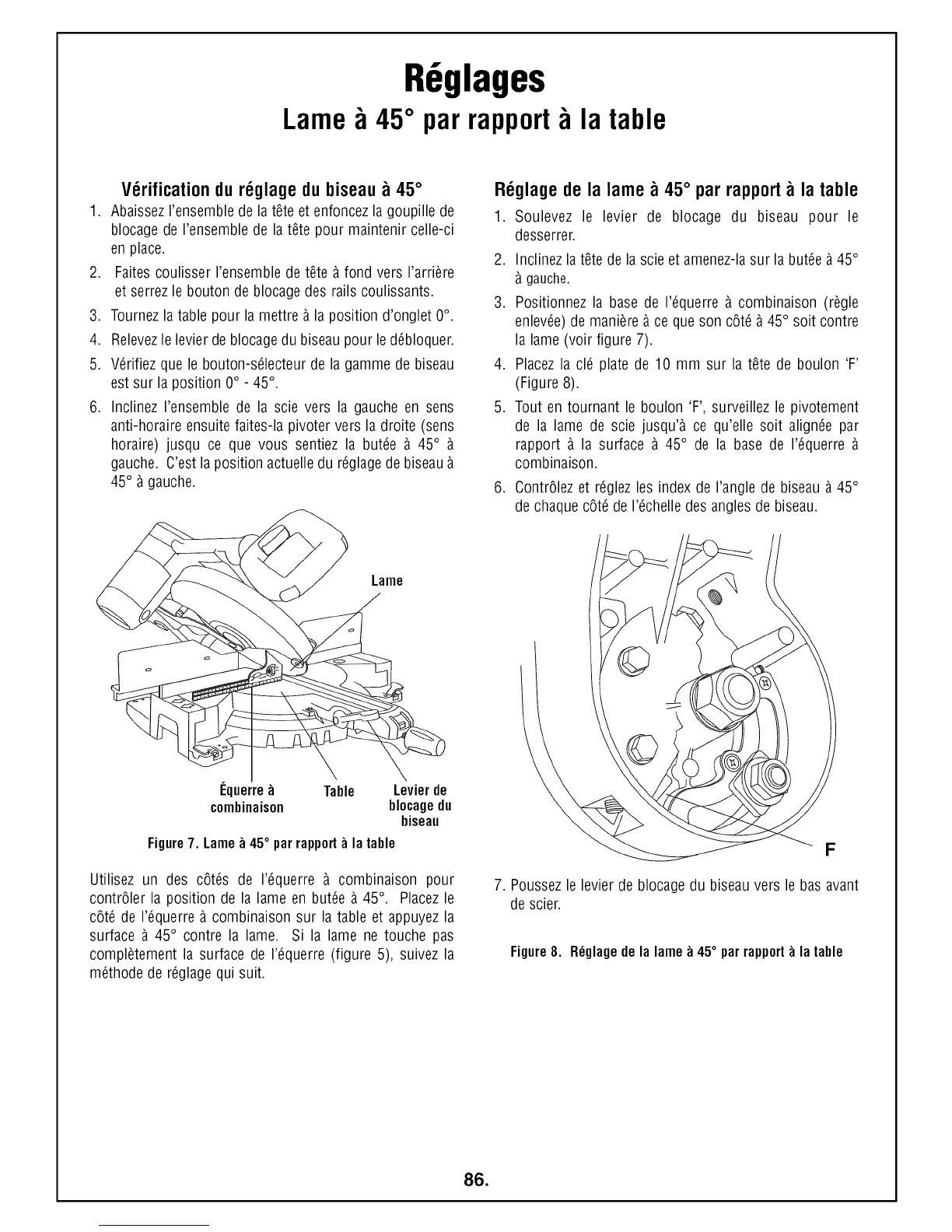 contr61er la position de la lame en but6e _ 45°. Placezle