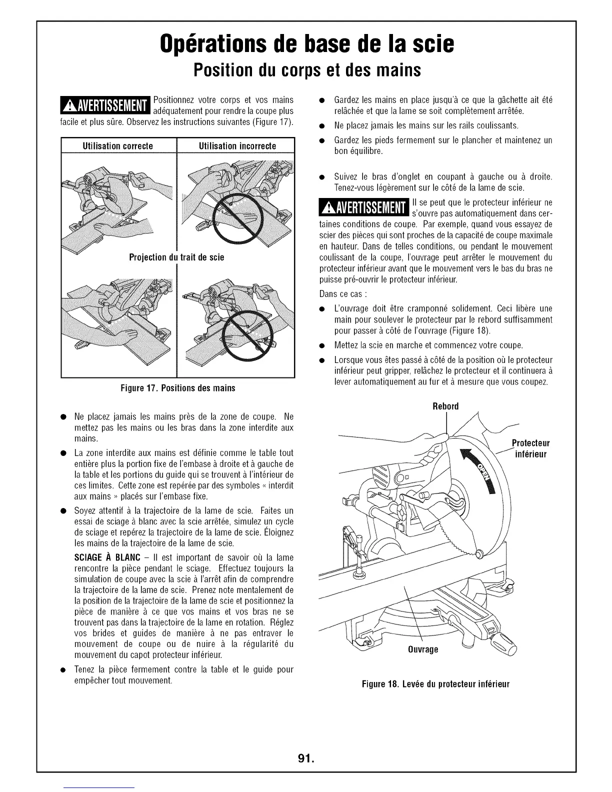 • Soyez attentif b. la trajectoire de la lame de scie. Faites un
