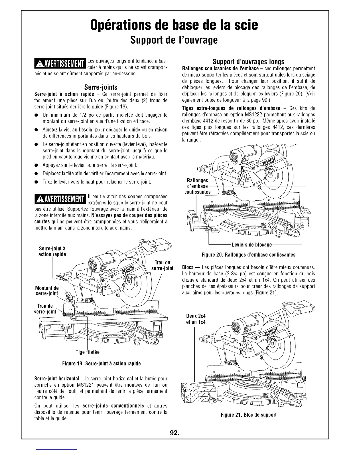 d_placer les rallonges et de bloquer les leviers (Figure 20). (Voir