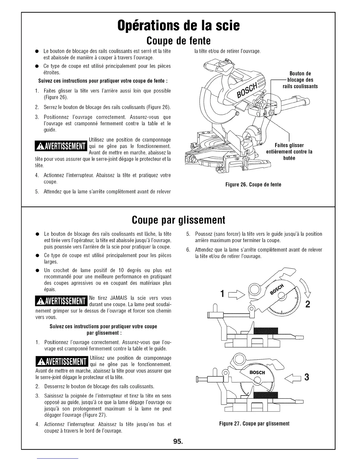 puis pouss_e vers I'arri_re de la scie pour pratiquer la coupe.