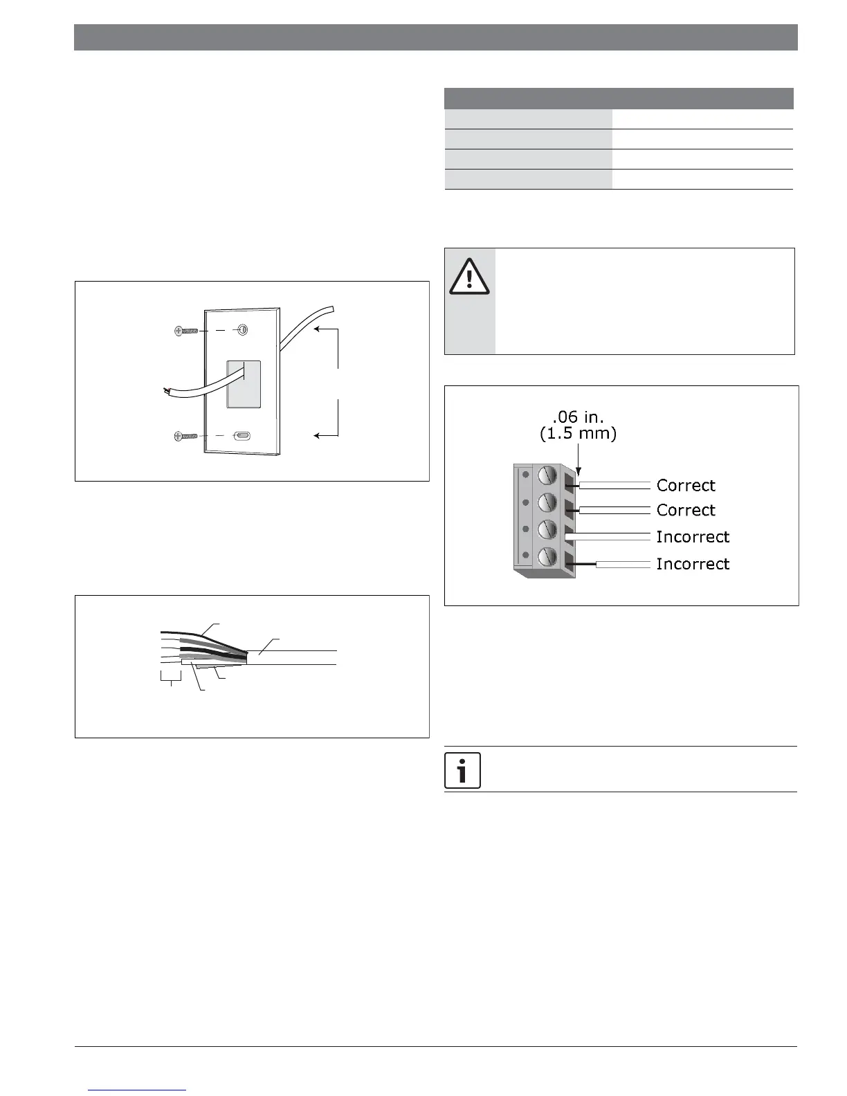 Allow no more than .06 inch (1.5mm) of bare communication