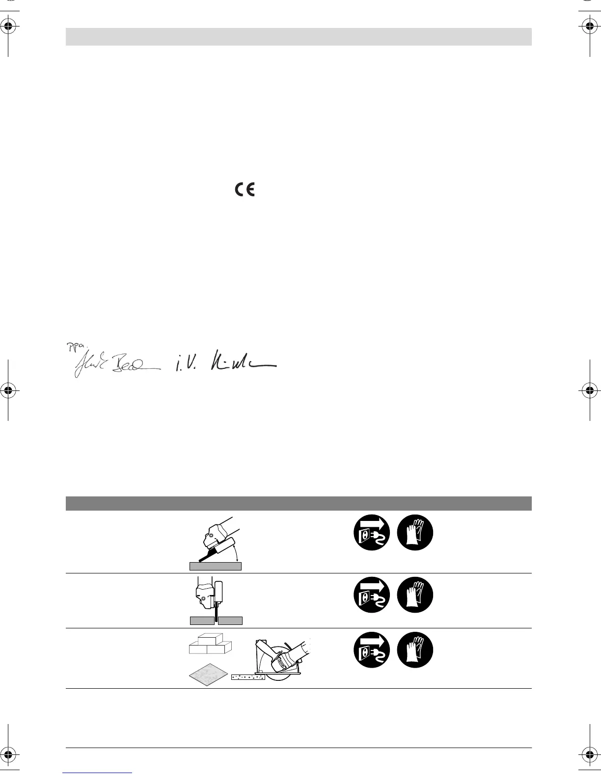 The following table indicates the action objectives for mounting and operation of the power tool. The instructions for each action