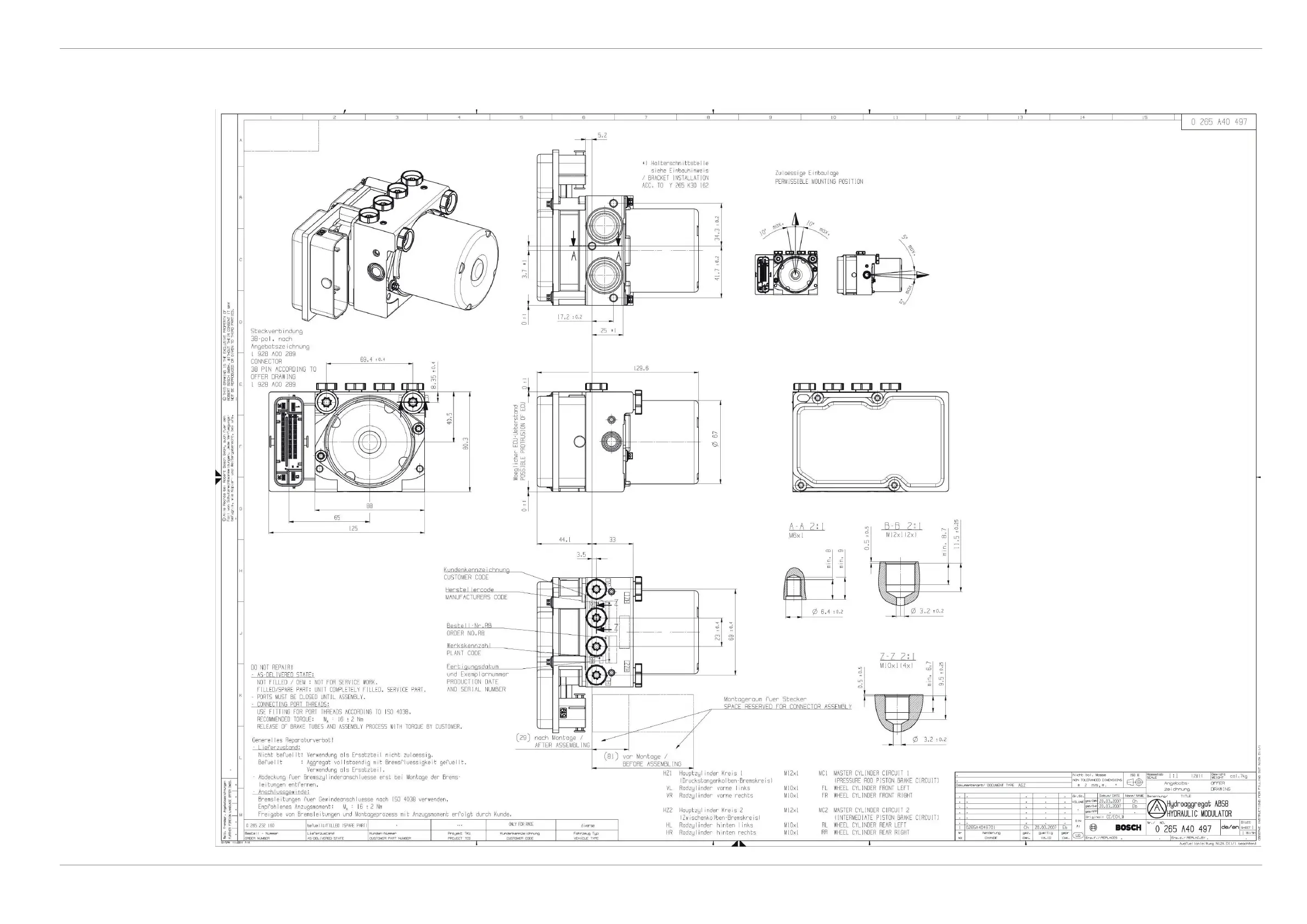 Bosch ABS M4 - 11 Offer Drawing: Hydraulic Power Unit with Attached Control Unit