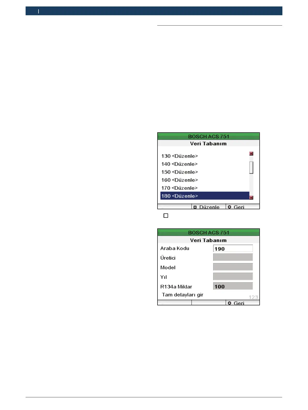 i "R134a Qty (R134a miktarı)" alanında girilebilecek