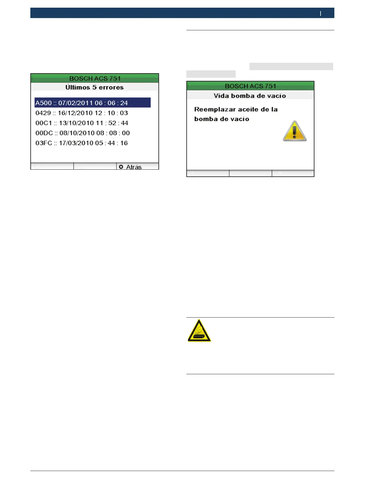 mento de cambiar el aceite de la bomba de vacío, aparece