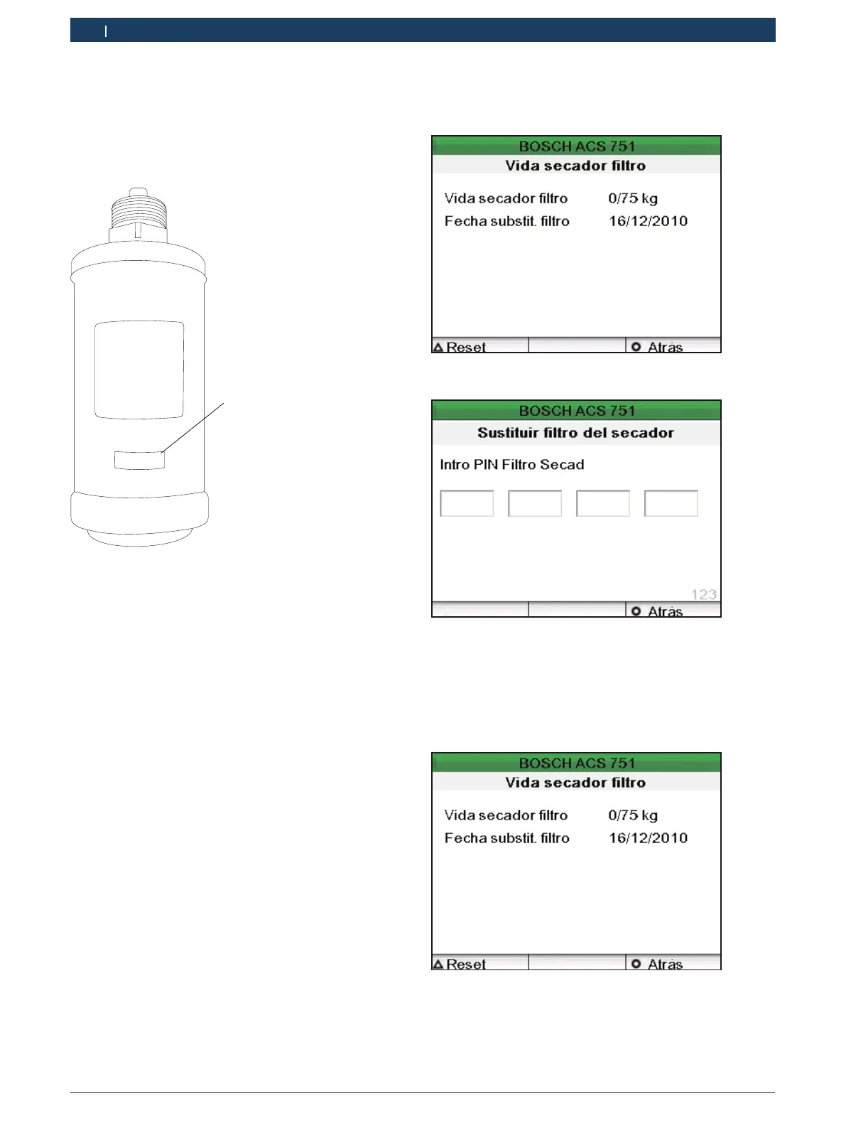 "Se ha sustituido con éxito el deshidratador y reiniciado