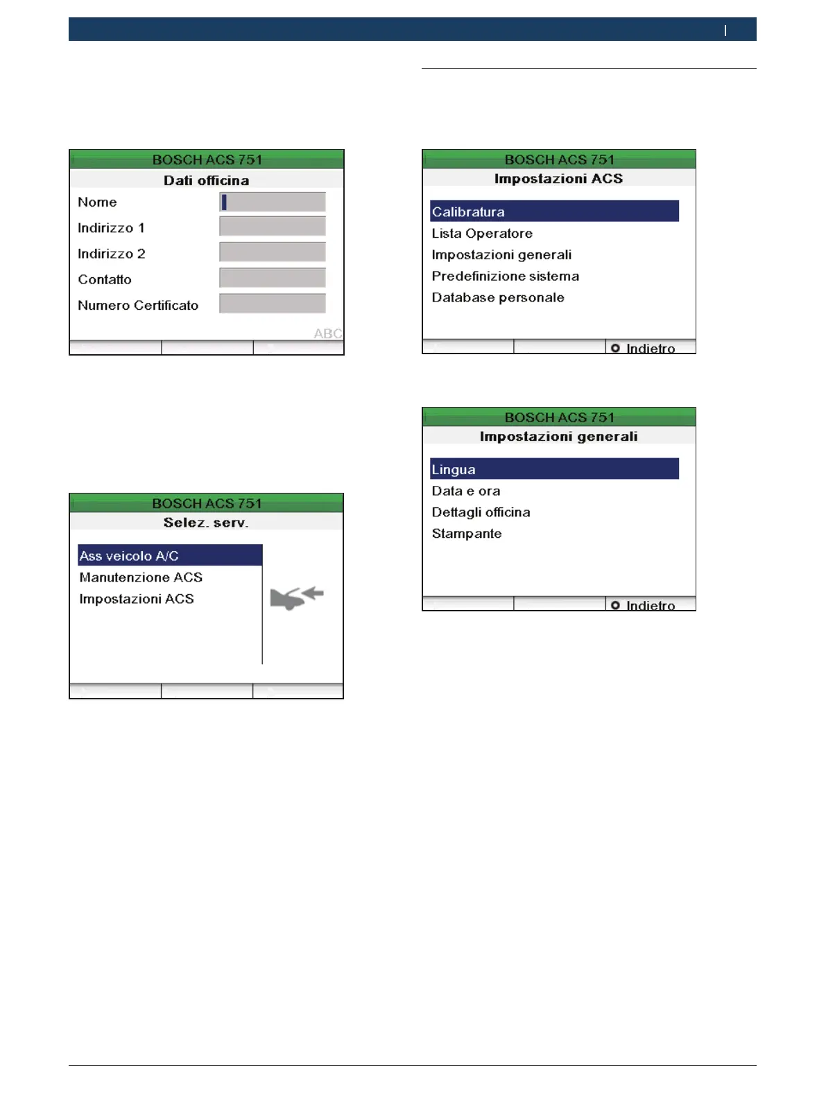 10. Inserire i dati dell'officina. Premere o o u per pas-