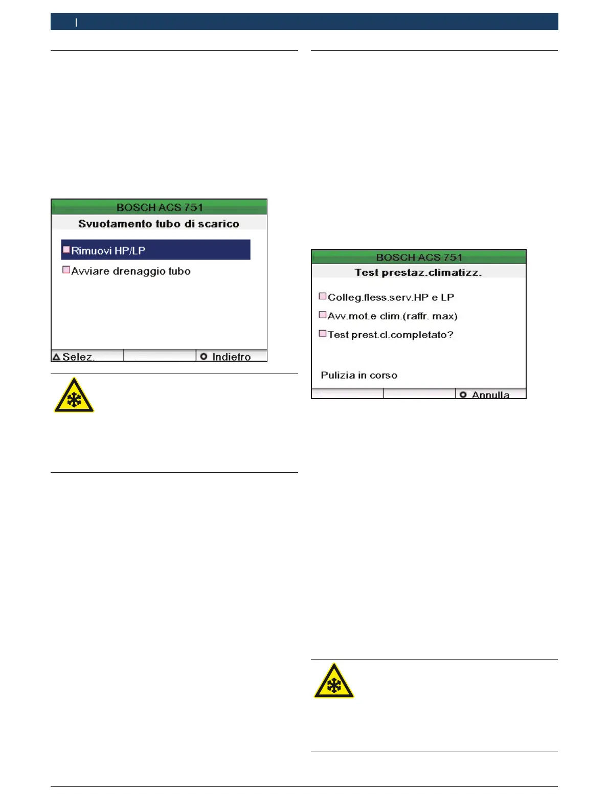 "Ha inizio lo svuotamento tubo di scarico. Manutenzione