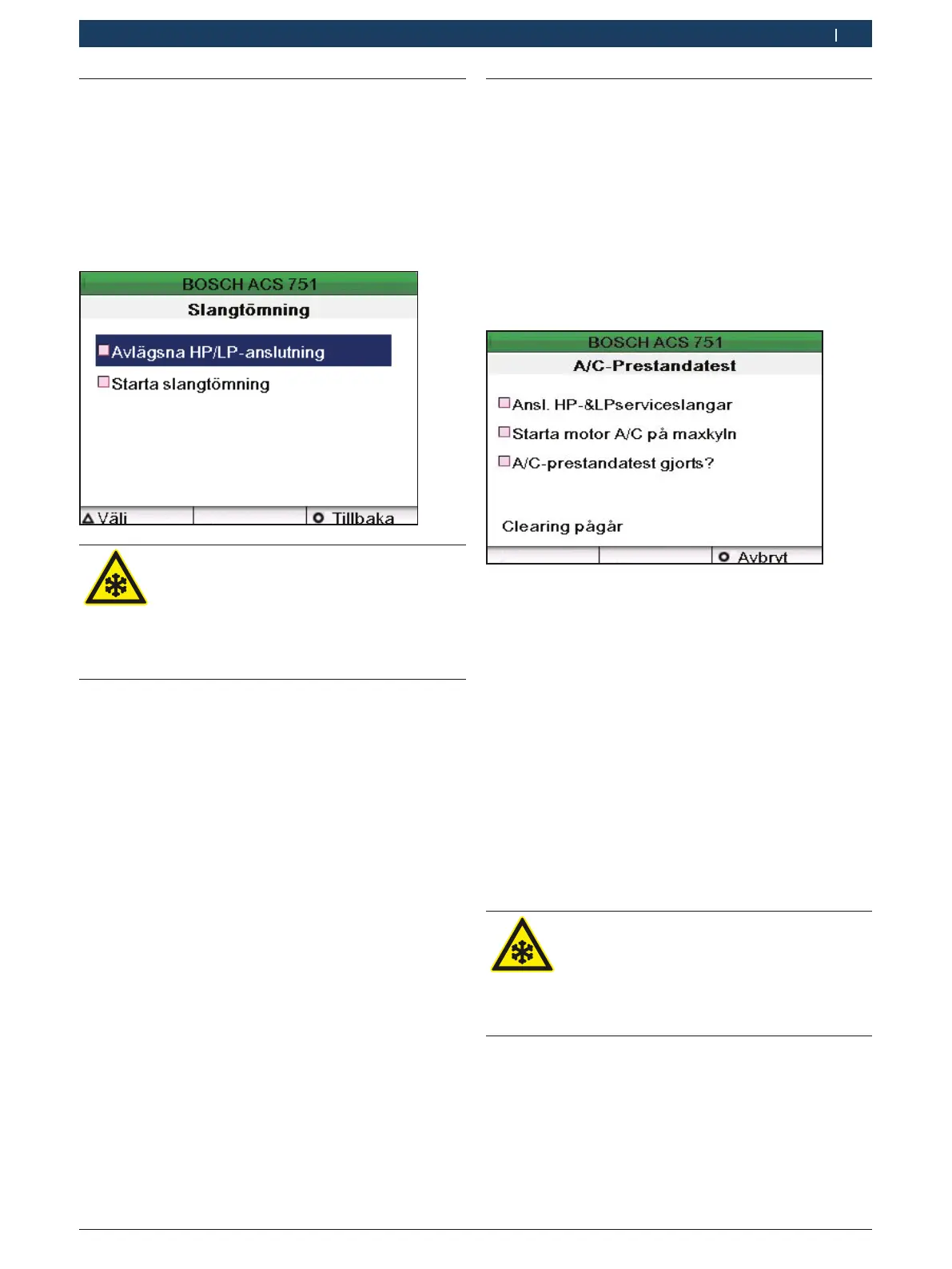 12. Tryck på ' för att välja "Starta slangtömning". För