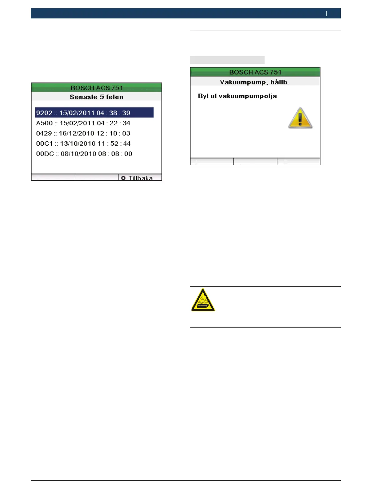 Oljan i vakuumpumpen ska bytas var 60:e drifttimme. När