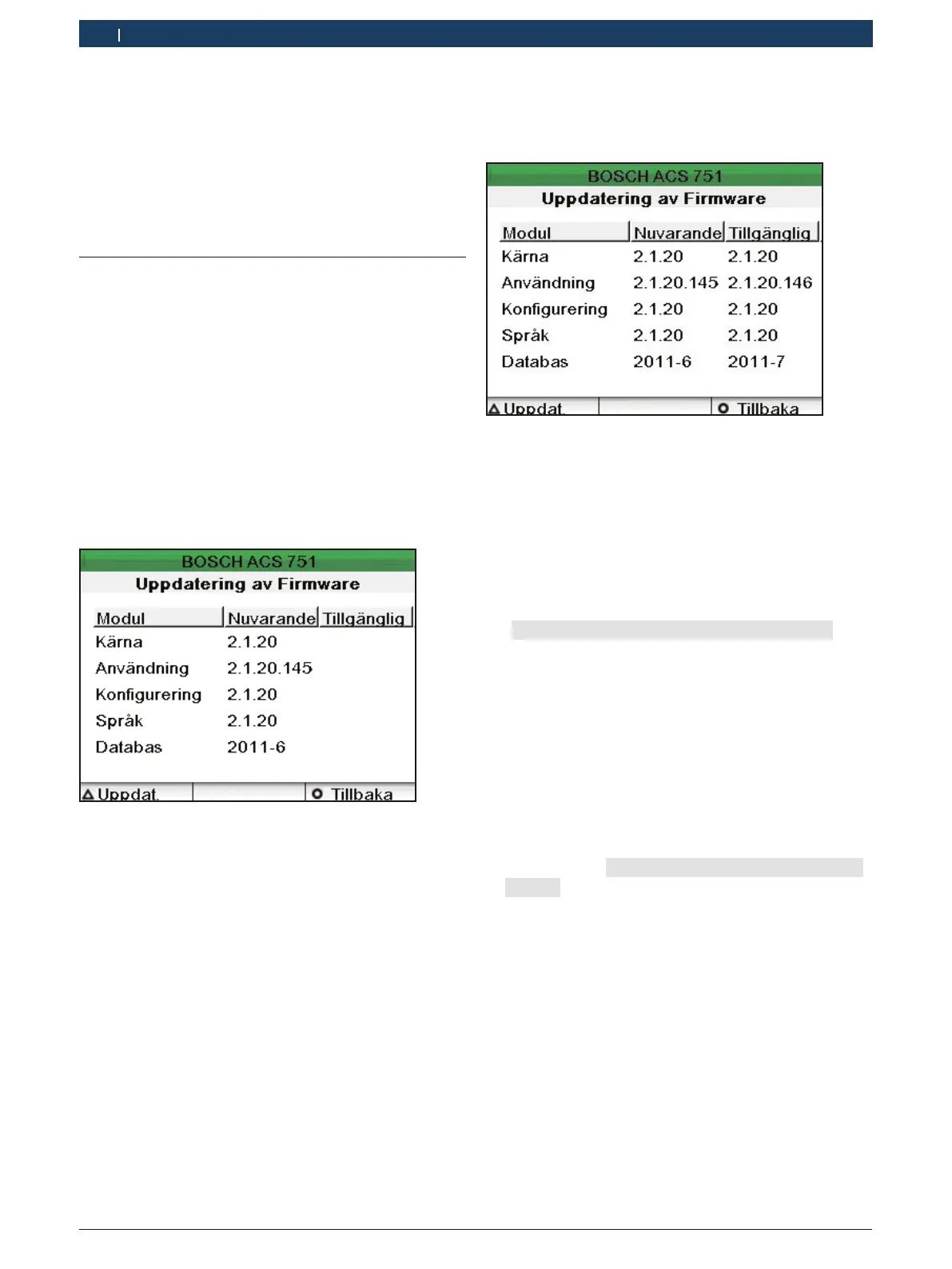 Modulernas versioninformation i ACS 651/751
