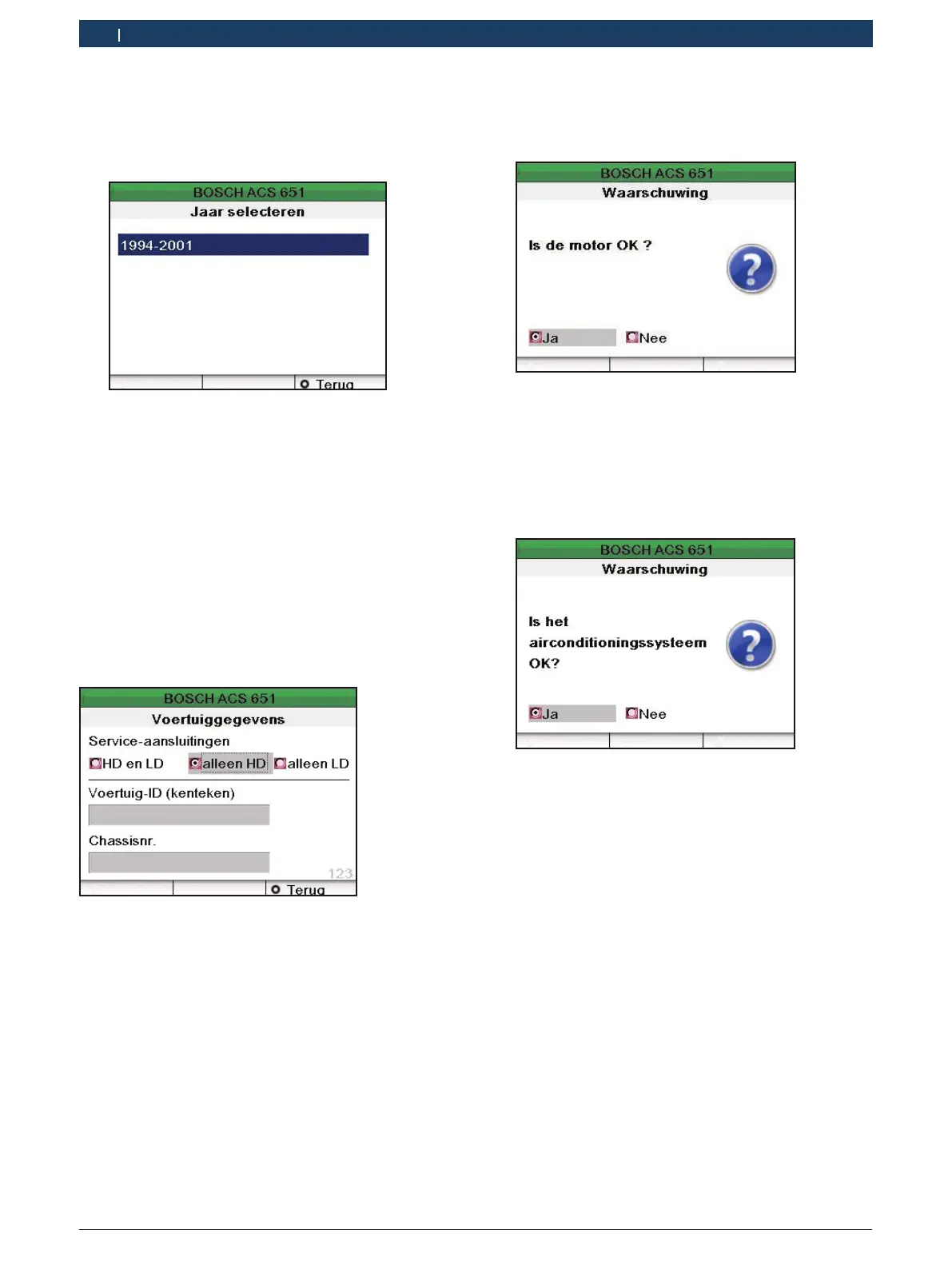 19. Wanneer het A/C-systeem OK is, druk dan op E.