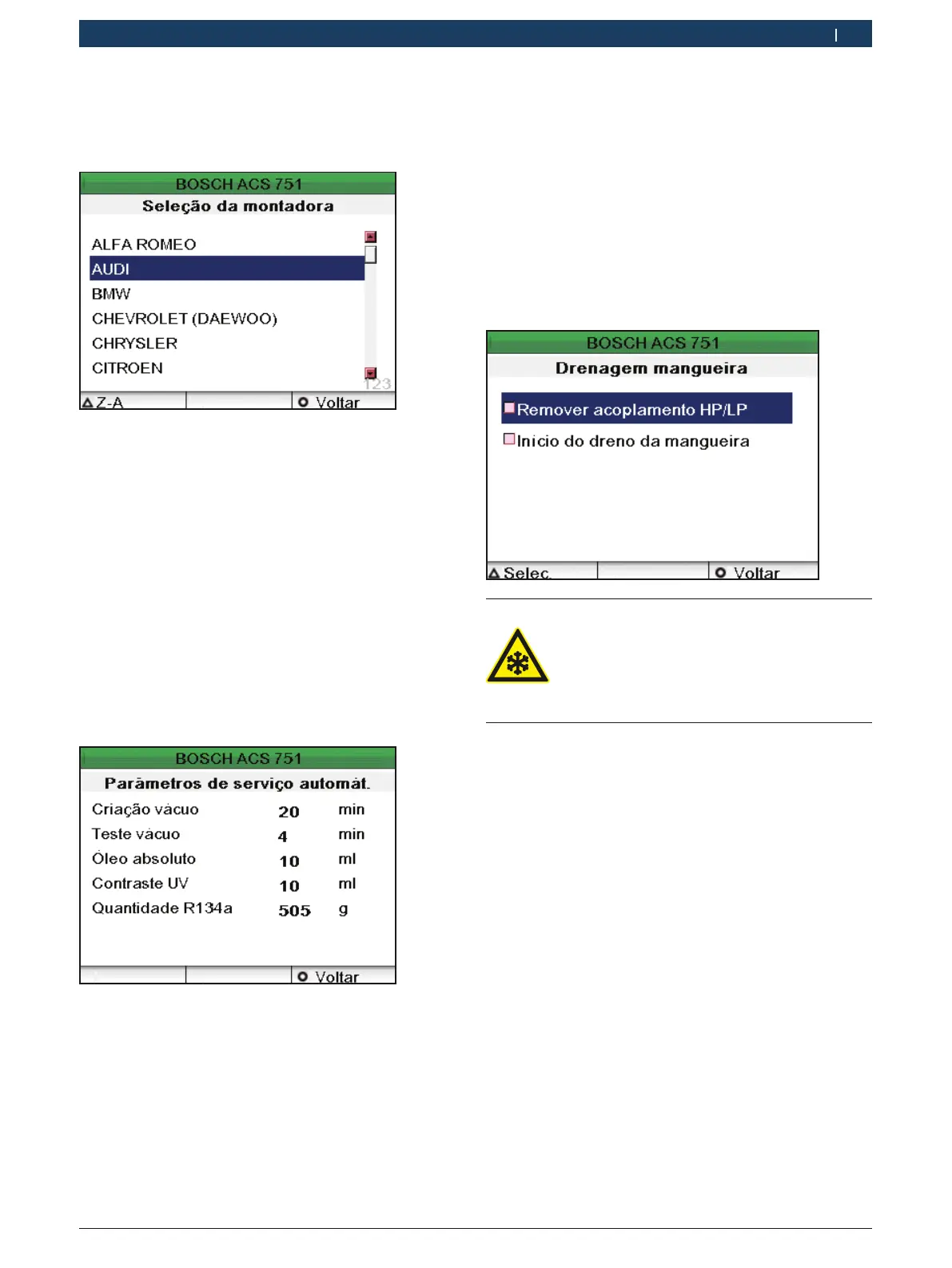 Aviso - risco de congelação!