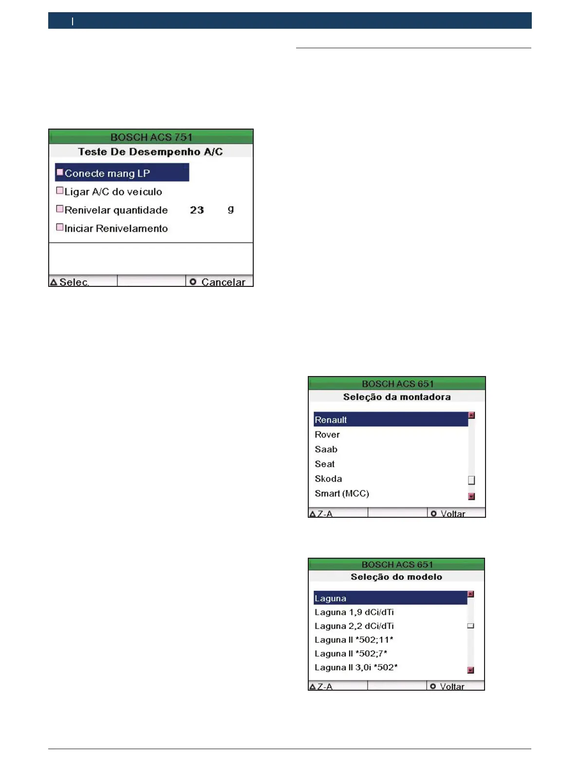5. Seleccionar “Serviço ao A/C Renault ” e premir E.