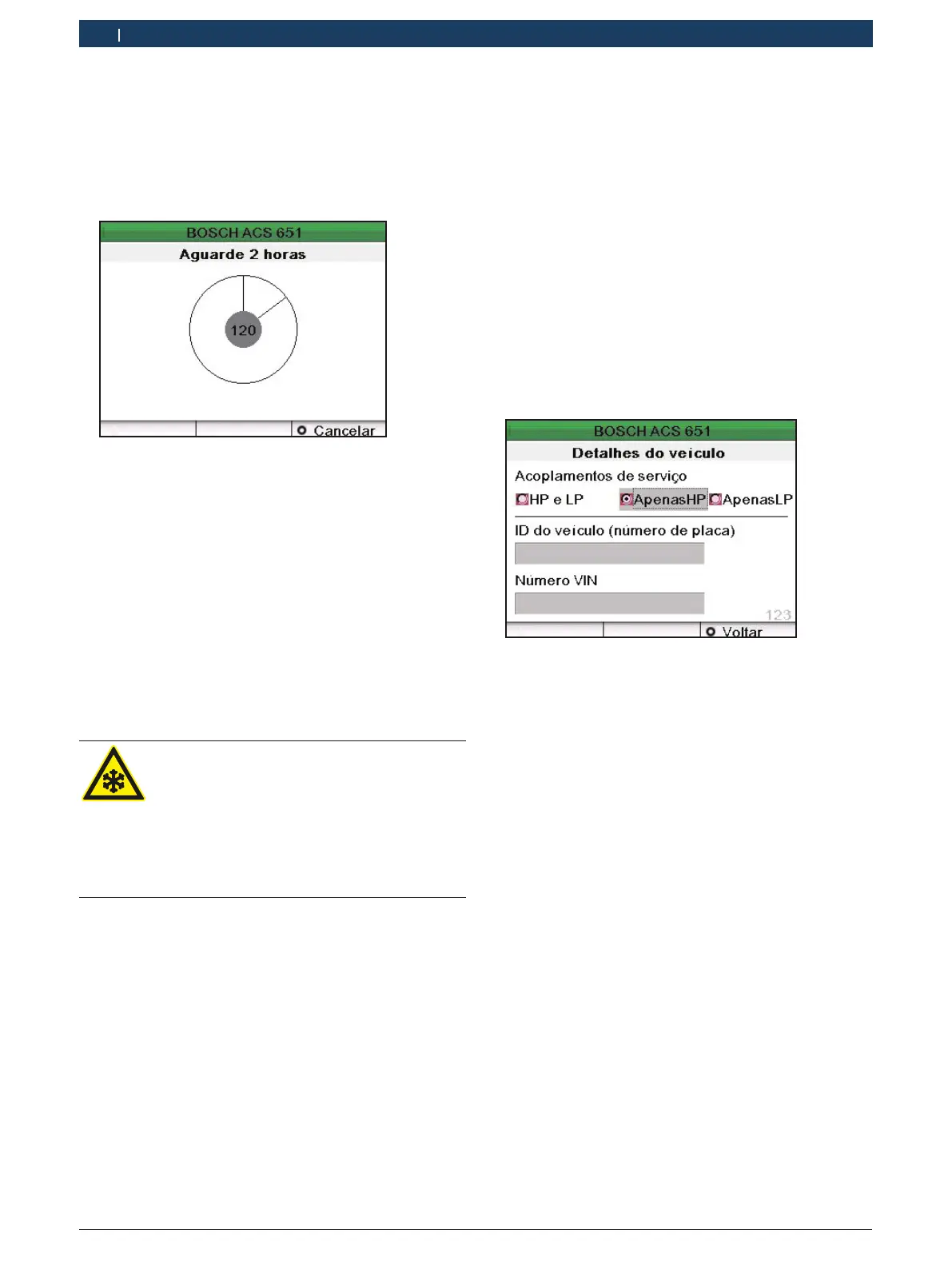Cuidado – Risco de queimaduras pelo frio!