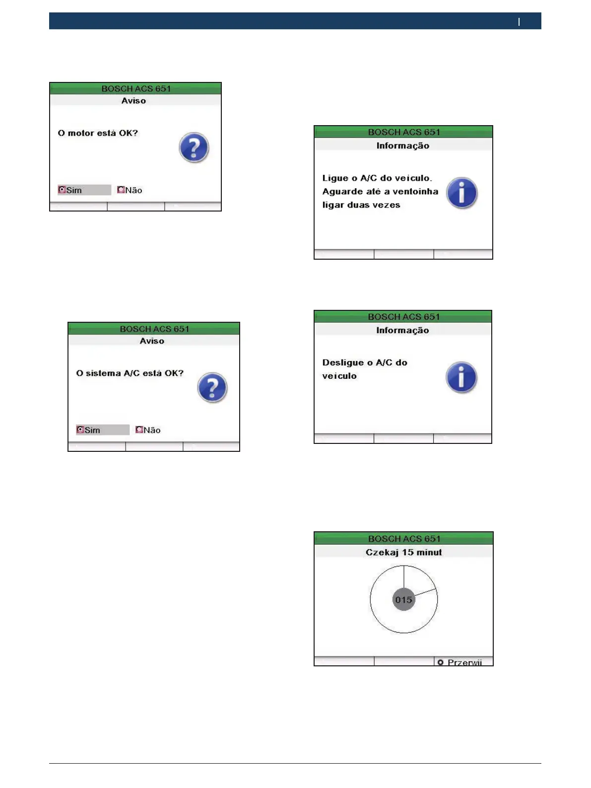i Se o motor não estiver OK, seleccionar “Não” e