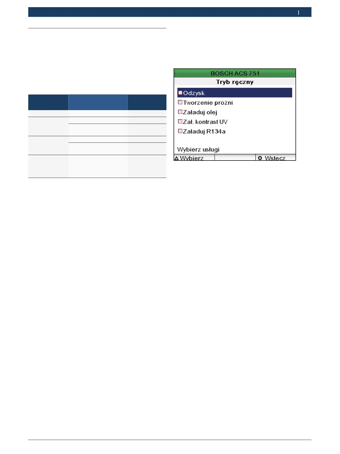 3. W menu głównym, wybierz "Serwis układu A/C po-