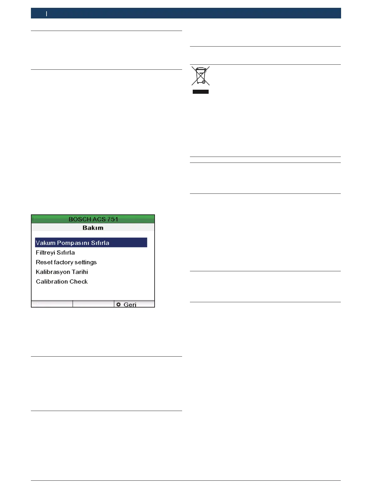 ¶ Maintenance (Bakım) ekranında, "Calibration Date