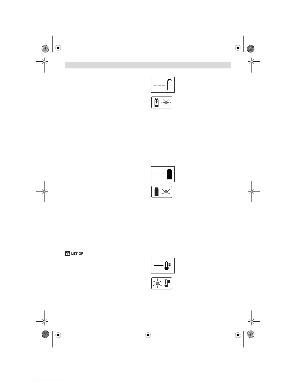 Indicatie-element op de accu: Tijdens het opladen gaan de