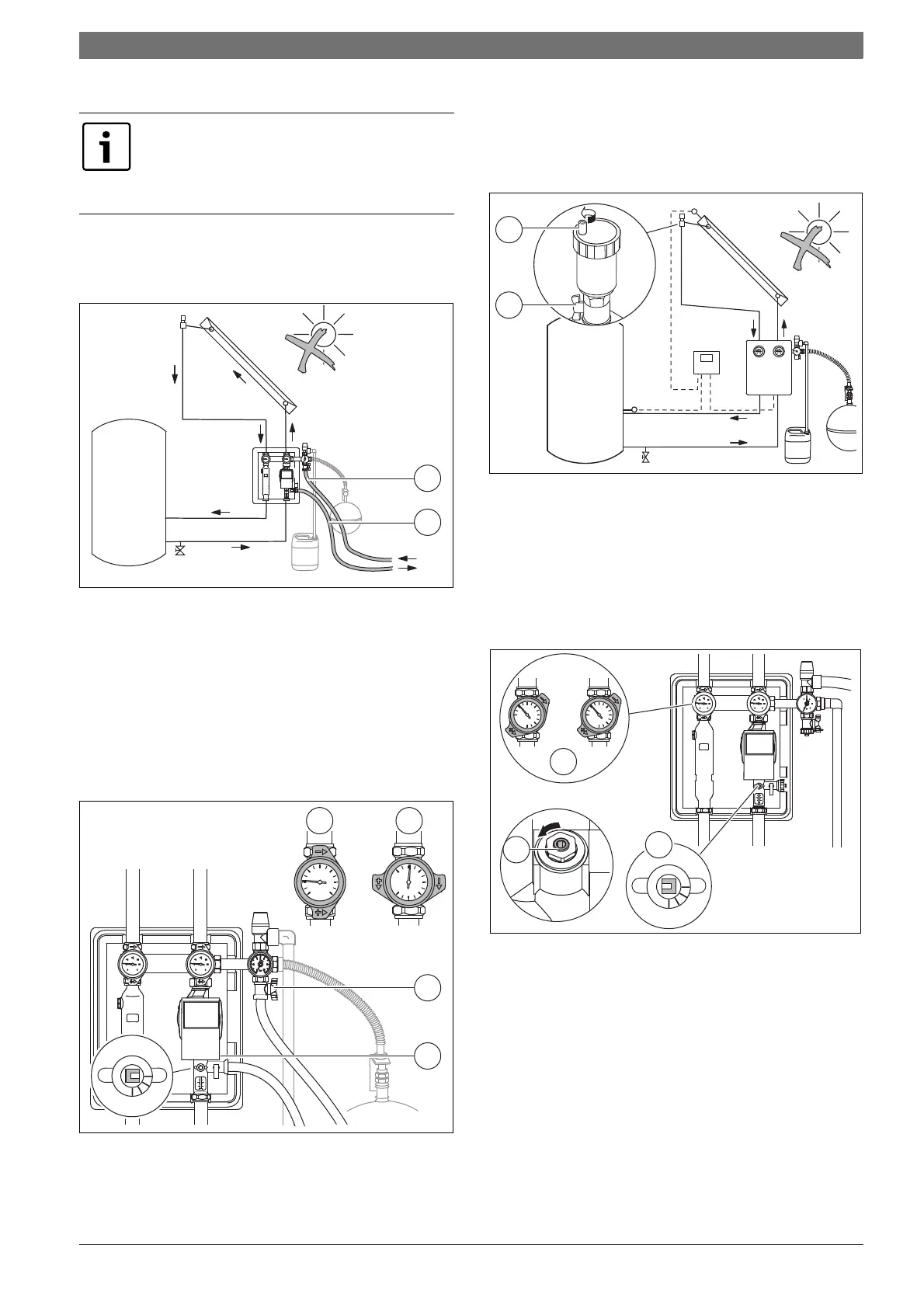 ▶ Close the fill and drain valves [3] in the solar pump station.