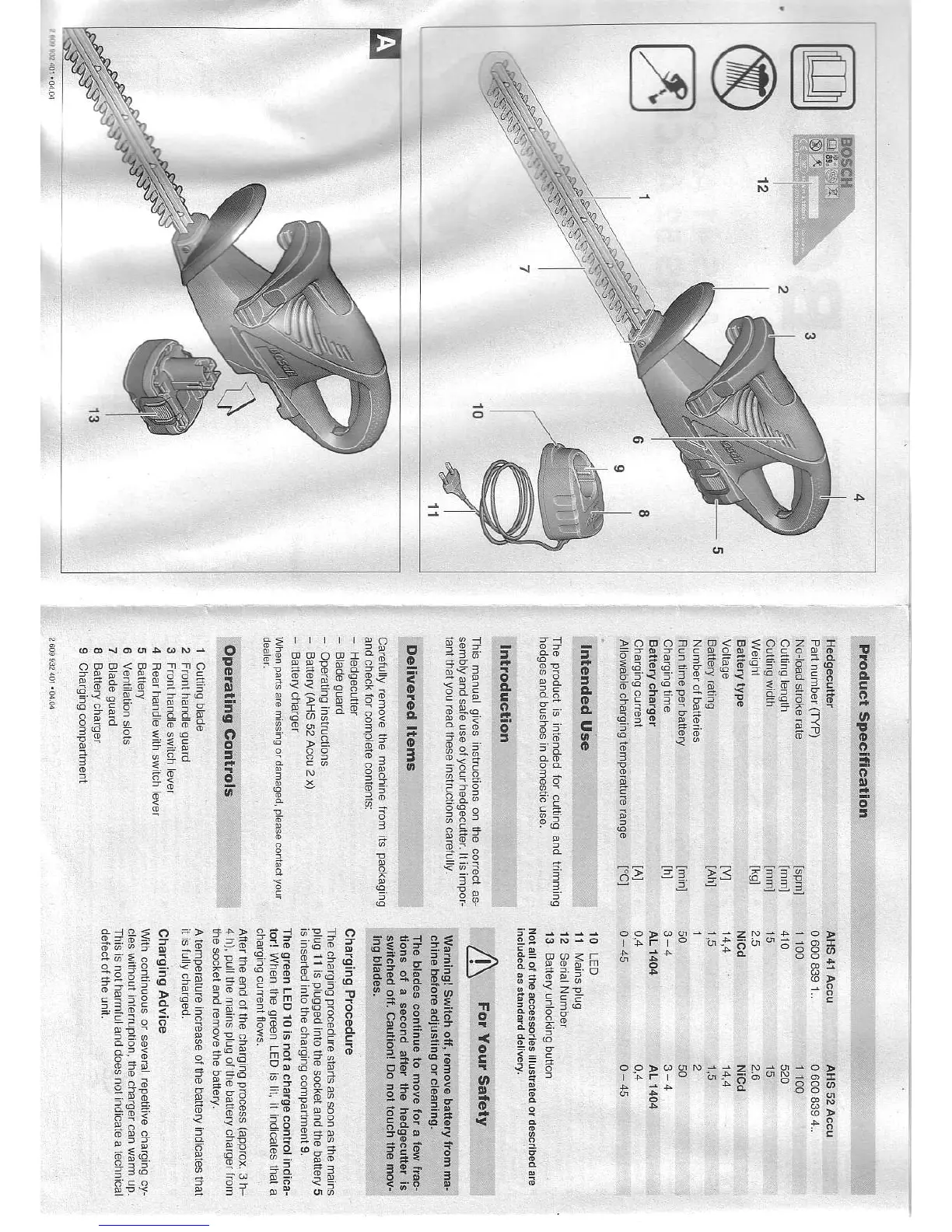 Bosch AHS 52 ACCU - Product Specification; Intended Use; Introduction; Delivered Items