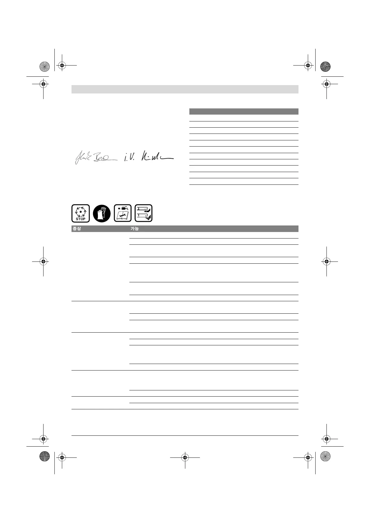 심한 진동 / 소음이 있습니다 날의 너트 / 볼트가 느슨합니다 날의 너트 / 볼트를 조이십시오 (17 Nm)