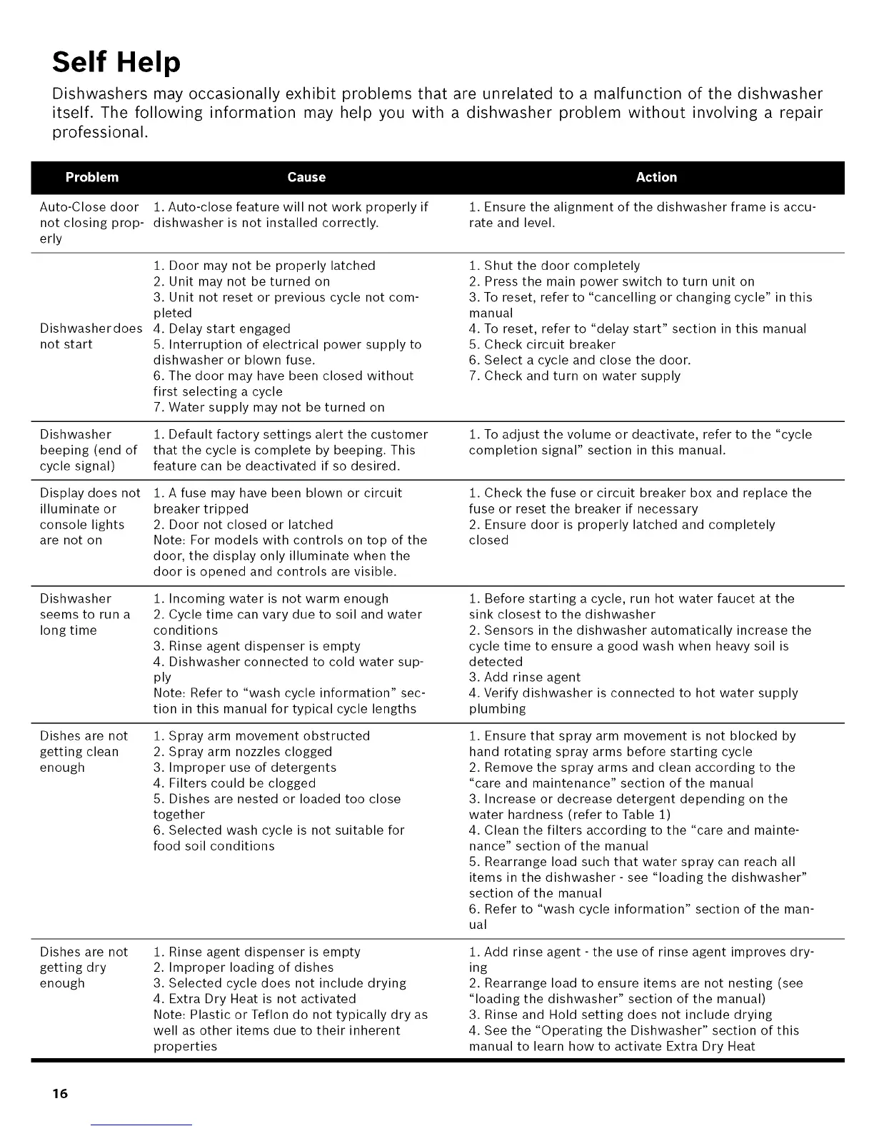 itself. The following information may help you with a dishwasher problem without involving a repair