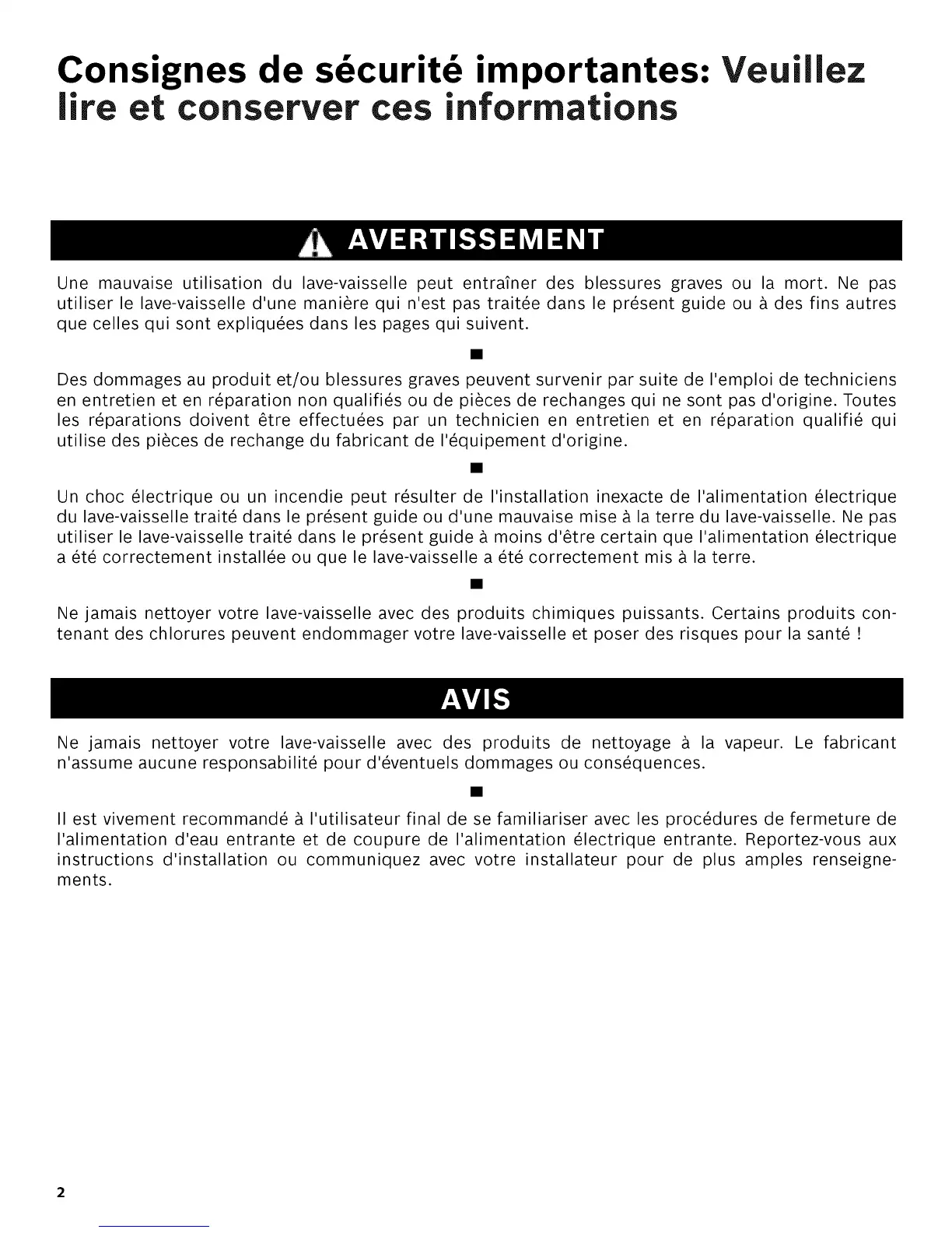 du lave-vaisselle trait_ dans le present guide ou d'une mauvaise mise A la terre du lave-vaisselle. Ne pas