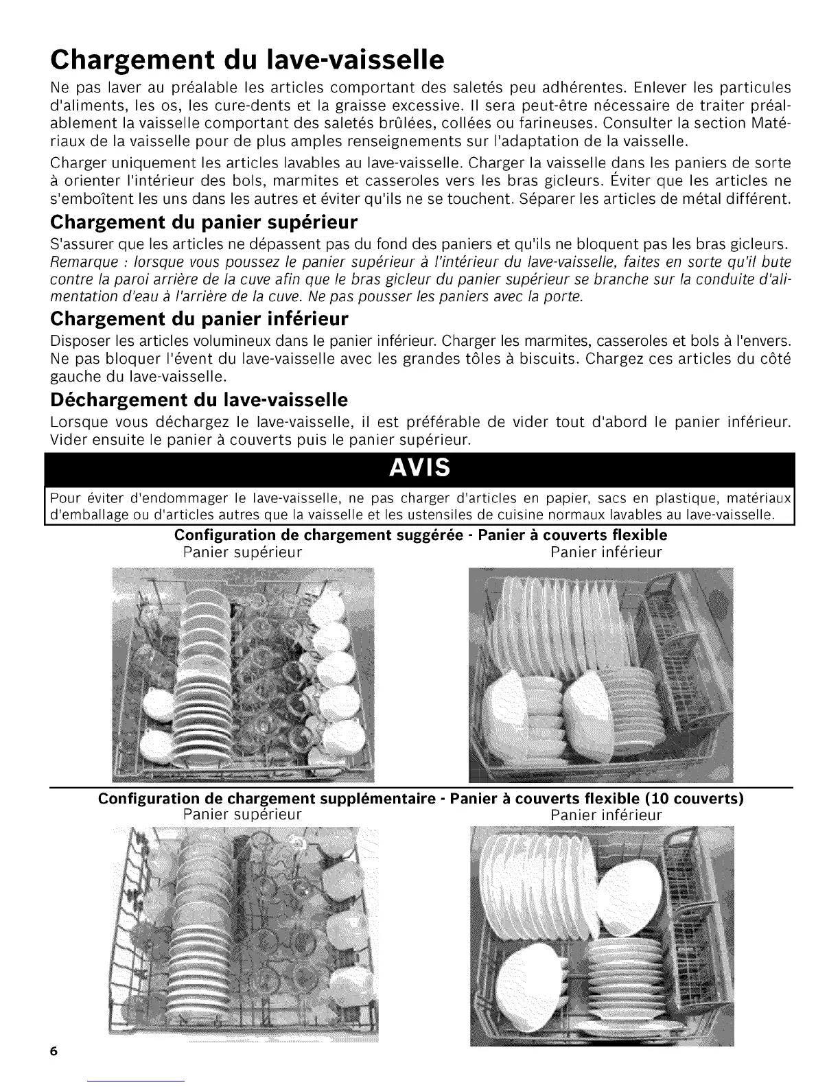 Pour _viter d'endommager le lave-vaisselle, ne pas charger d'articles en papier, sacs en plastique, mat_riaux