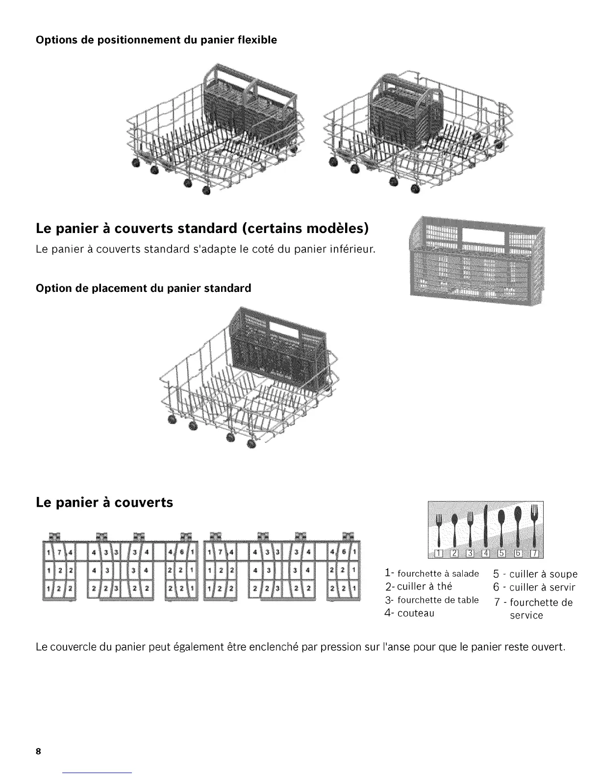 Le panier & couverts standard s'adapte le cot_ du panier inf_rieur.