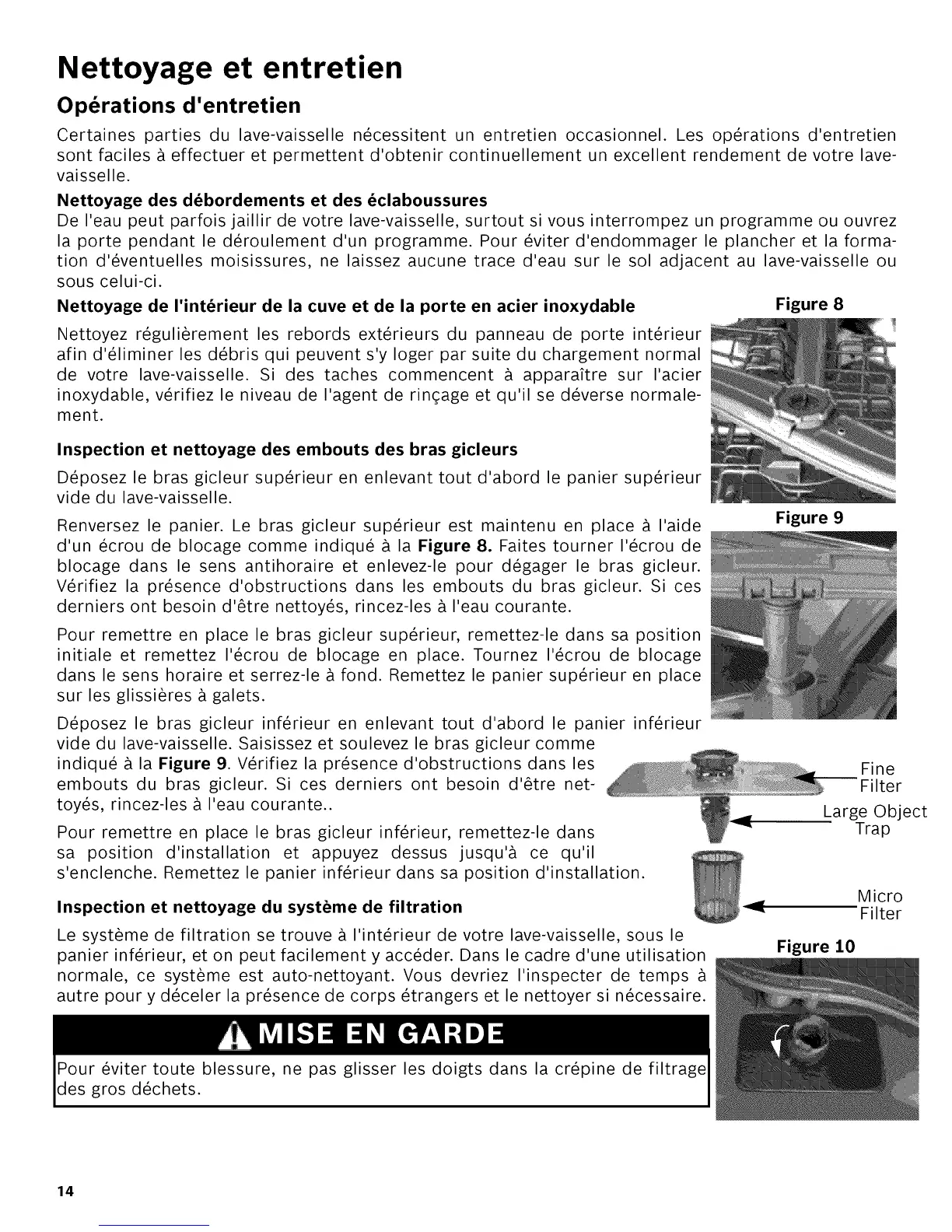 Certaines parties du lave-vaisselle n_cessitent un entretien occasionnel. Les operations d'entretien