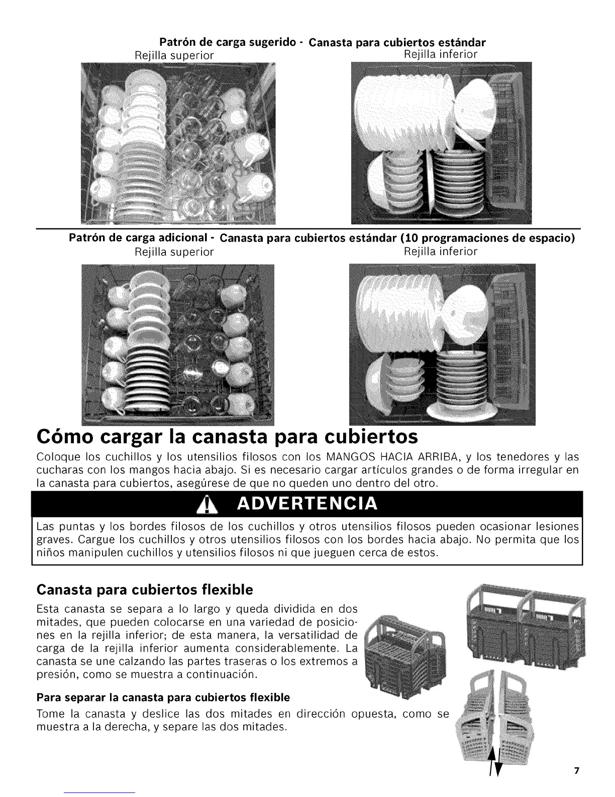 graves. Cargue los cuchillos y otros utensilios filosos con los bordes hacia abajo. No permita que los