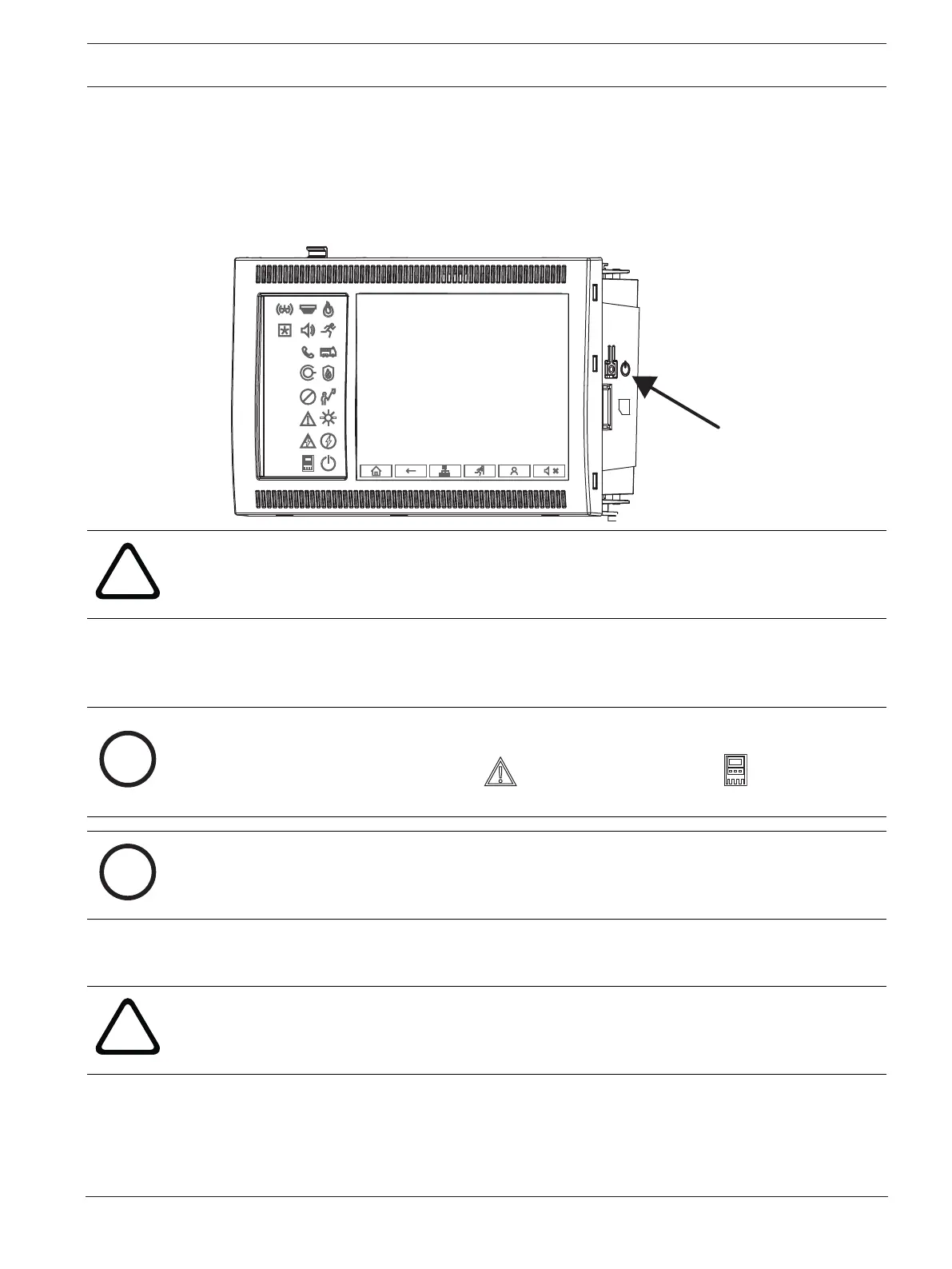 – Press for 8 seconds: Interrupt the panel and reboot it (for example in case of a software
